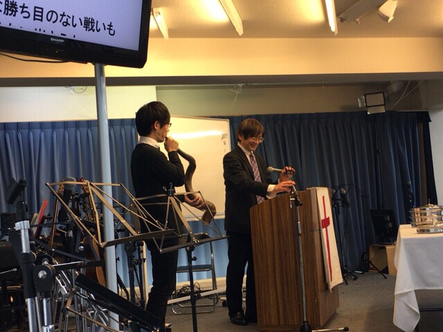 角笛が吹かれました! 月曜第二礼拝が始まりました。