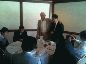 セミナー後のランチで、食前のお祈りをするマーリン師