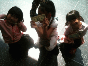 子どもチームの賛美後、賛美を見ていた方々がとても良かったと、三人に一ドルずつ渡して来られました!