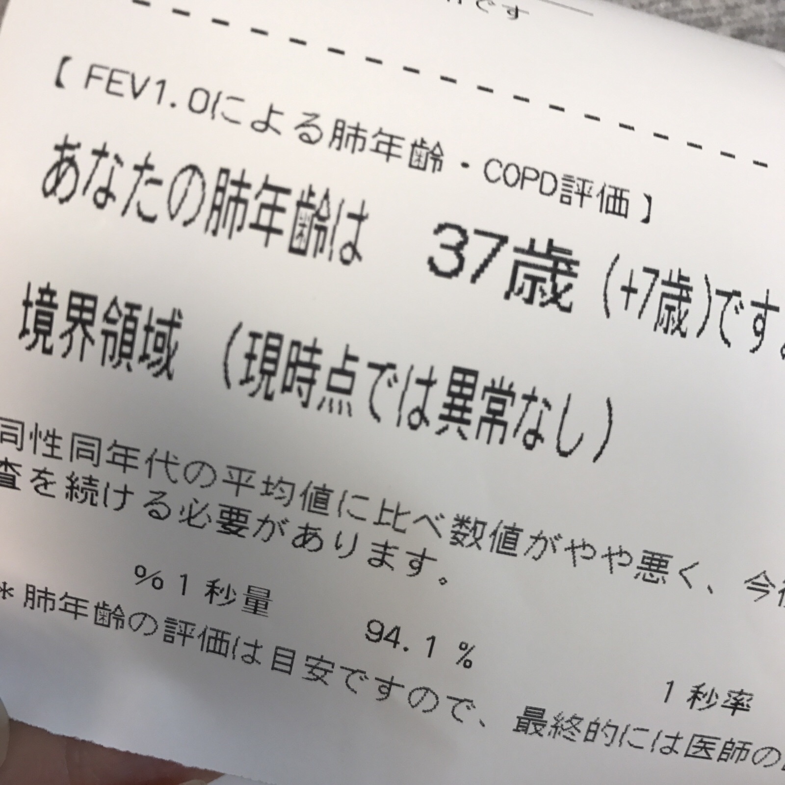 仕事で使い方教えて頂きました。 わたしの肺年齢^ ^ きゃ(^O^)