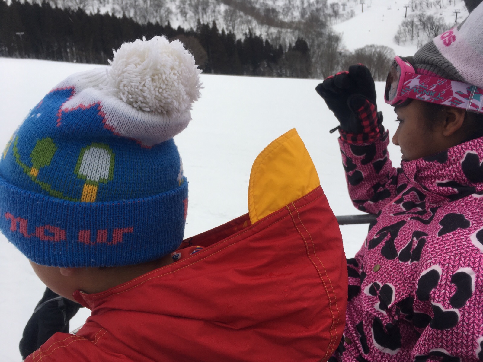雪、降ってて寒いですが、皆、元気です。 スキー・スノボ