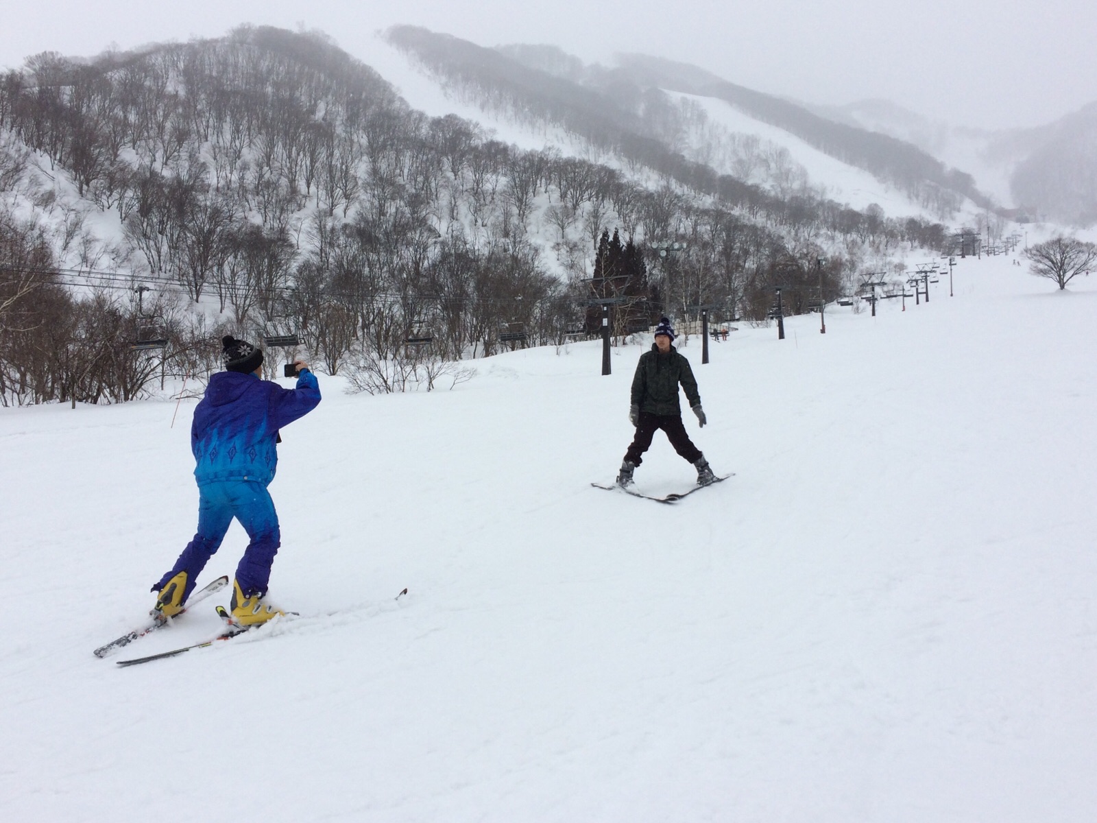 スタッフのしおこちゃんと、えりやくん。どんどん上手になります。 スキー・スノボ