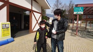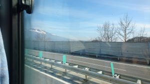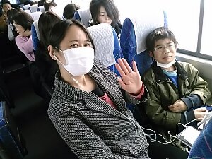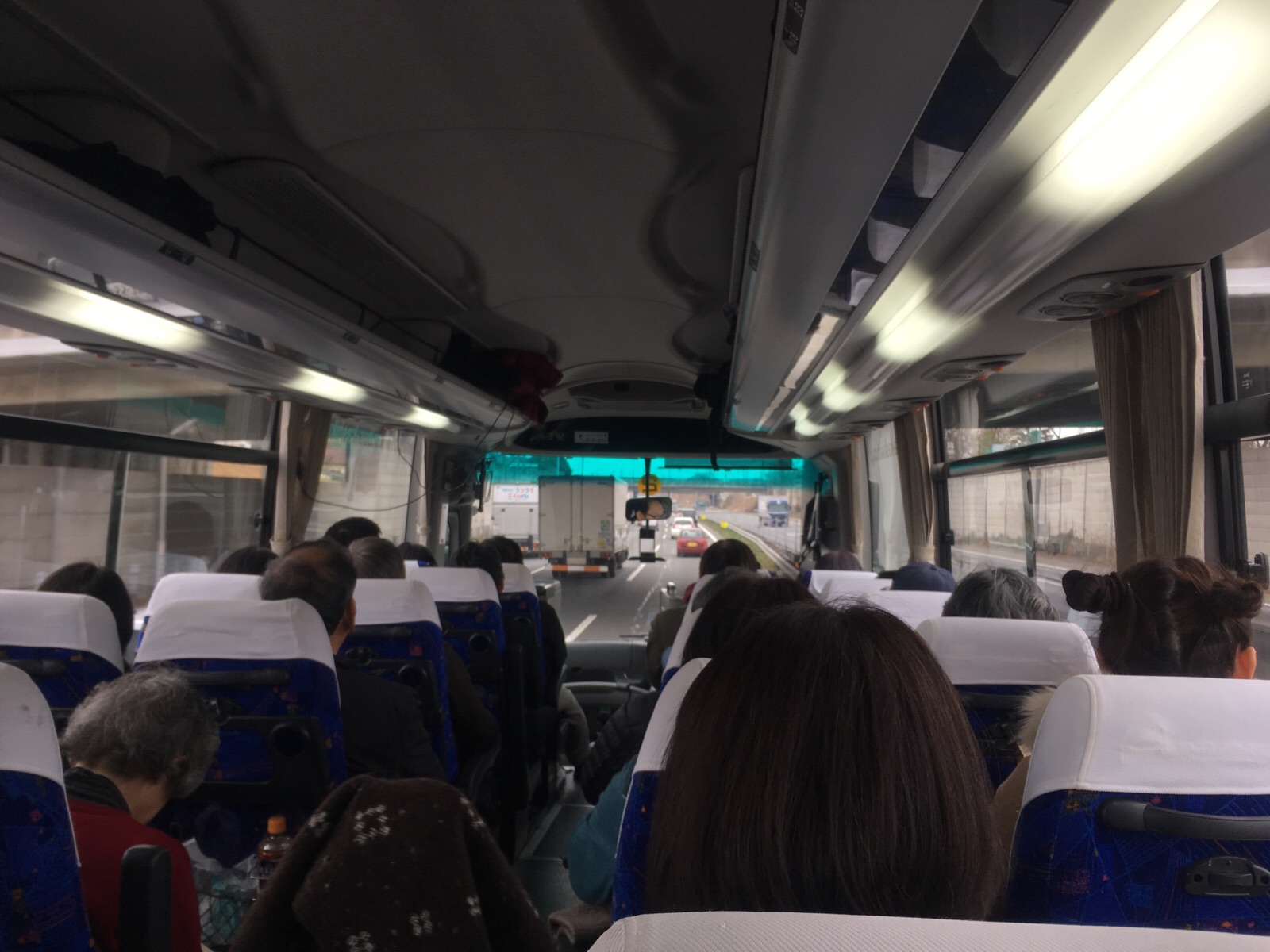 Dさんからの差し入れおやつが車内を回っています。美味しい〜 直行バス2