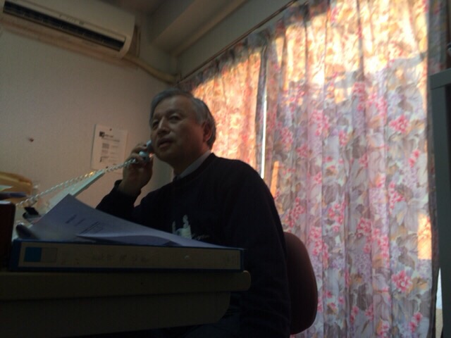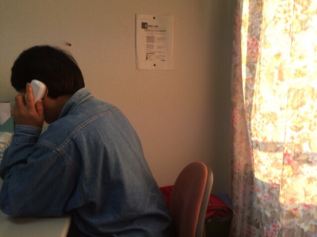 お電話で…! 隣で人影が〜? 明日からの白馬キャンプに向けて 屈伸運動中なんですかー?