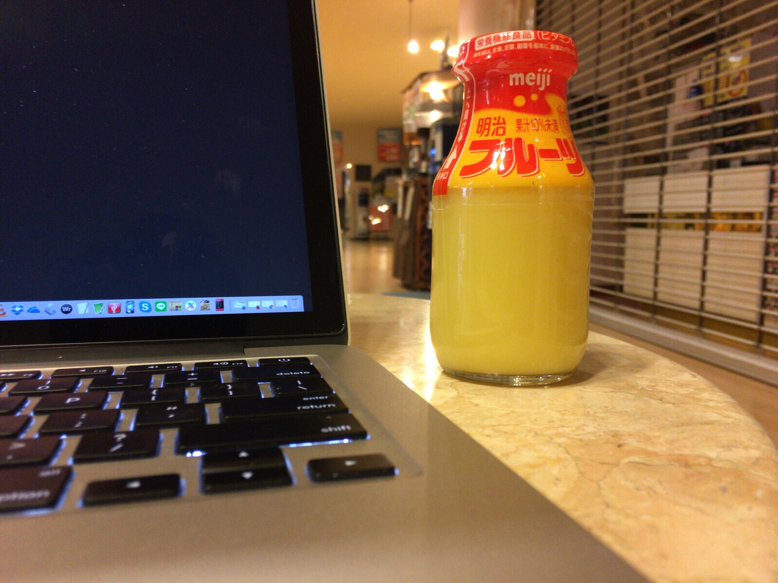 出発前にひと仕事。 フルーツ牛乳とともに。