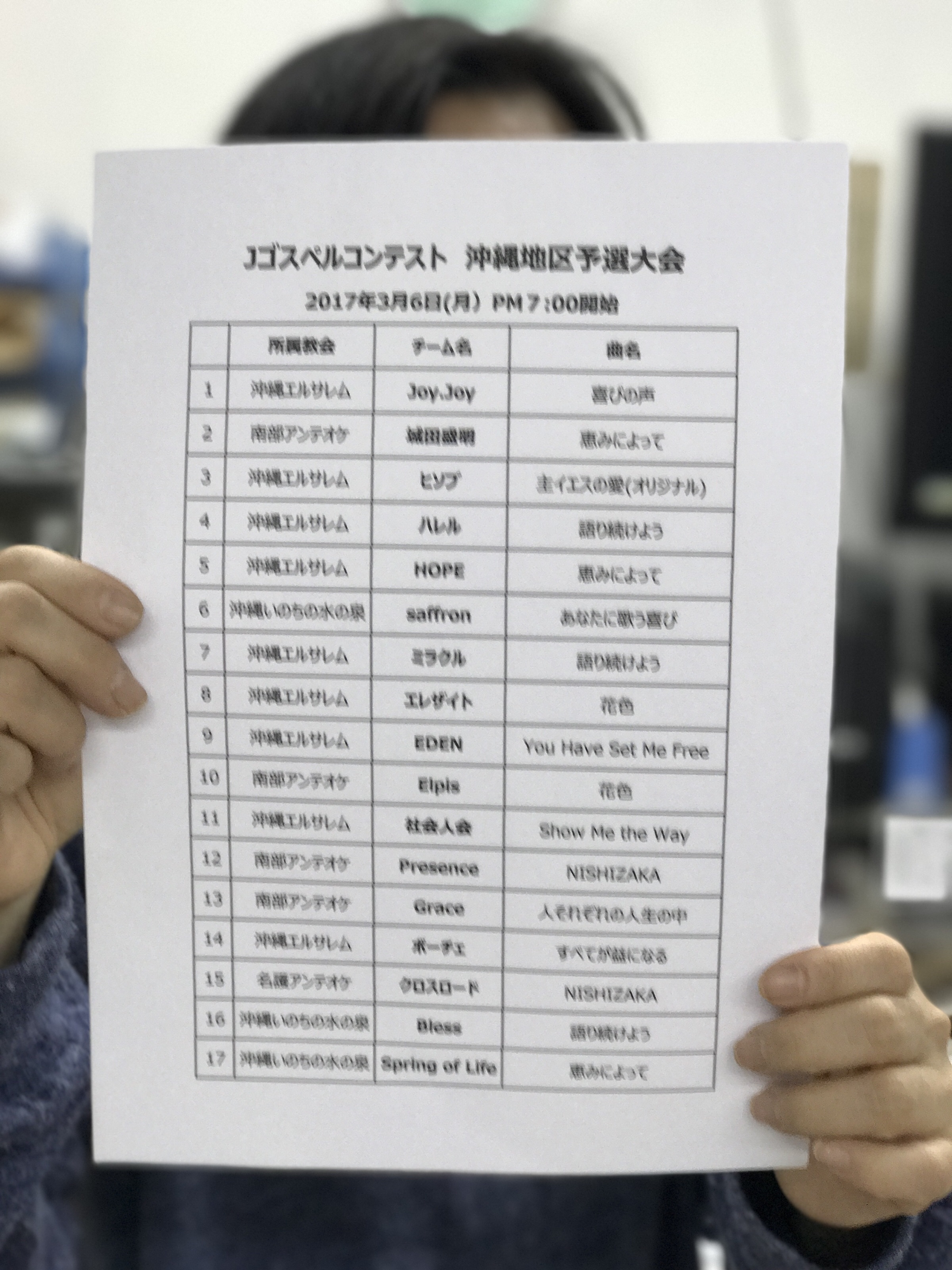 1位 Spring of Life 2位 Bless 3位 クロスロード 次点 ボーチェ 沖縄エルサレム Chinen