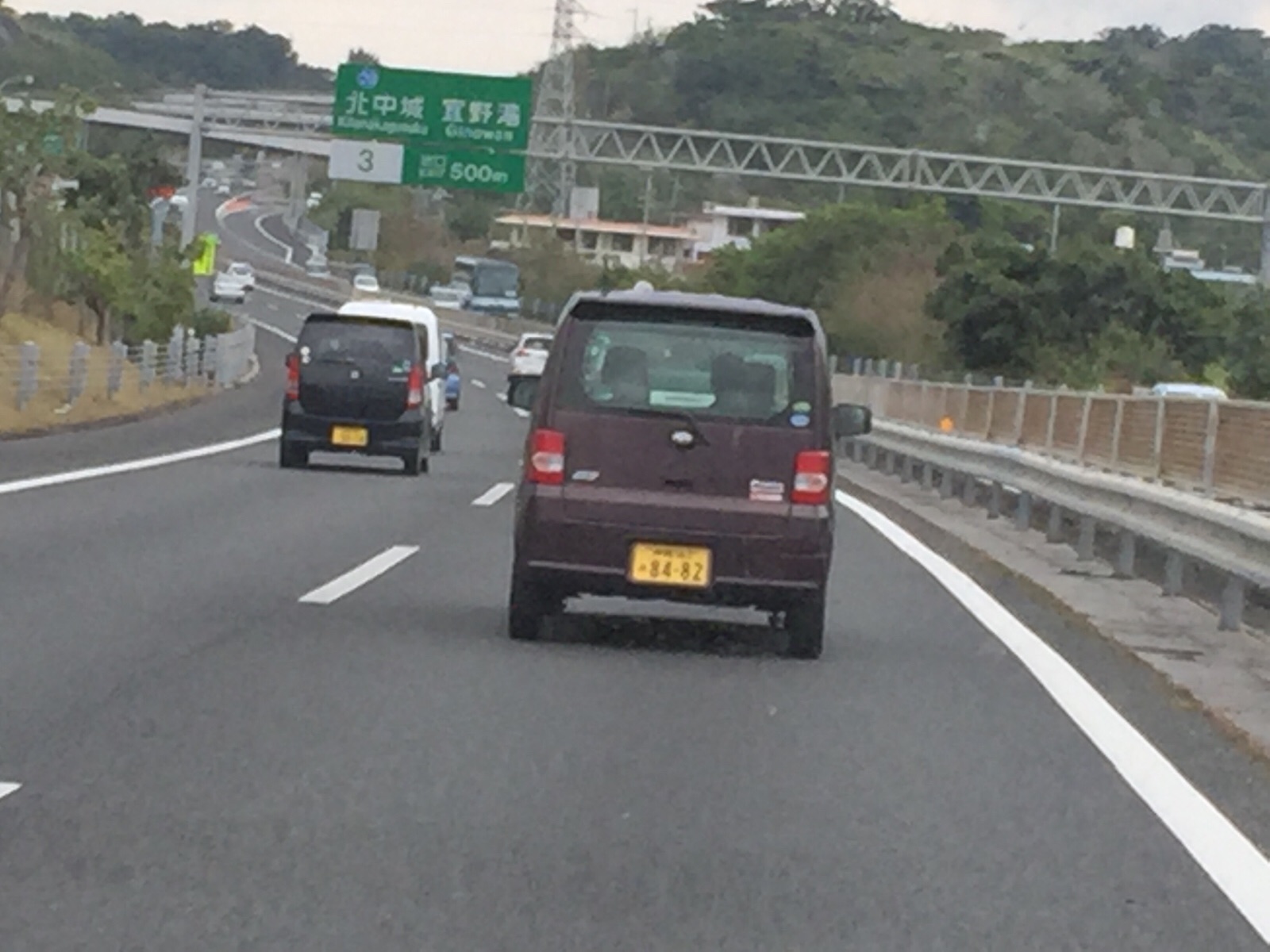 高速道路を名護に向かっています。 名護の聖会は10時から、名護市国際交流会館で行われます。 沖縄エルサレム Debora