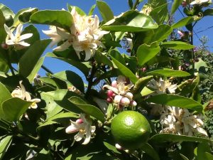 プルメリアのような香りのレモンの花と新しい実。
