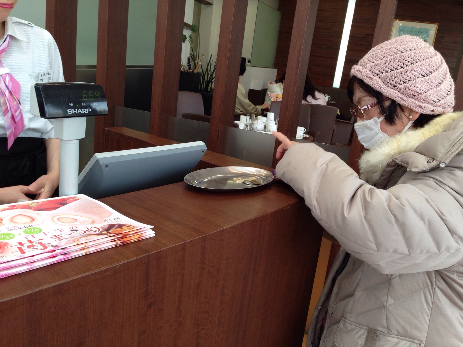 アメリカのお友達にスーザンさん、お土産を届けてほしいって。 真剣に選びます。 岡山 村上ょ