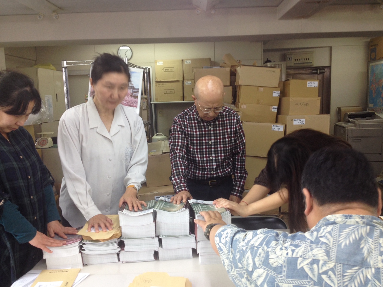 雲の間にある虹出版です。 月刊誌を発送します。 お祈りしてスタートします。 kato