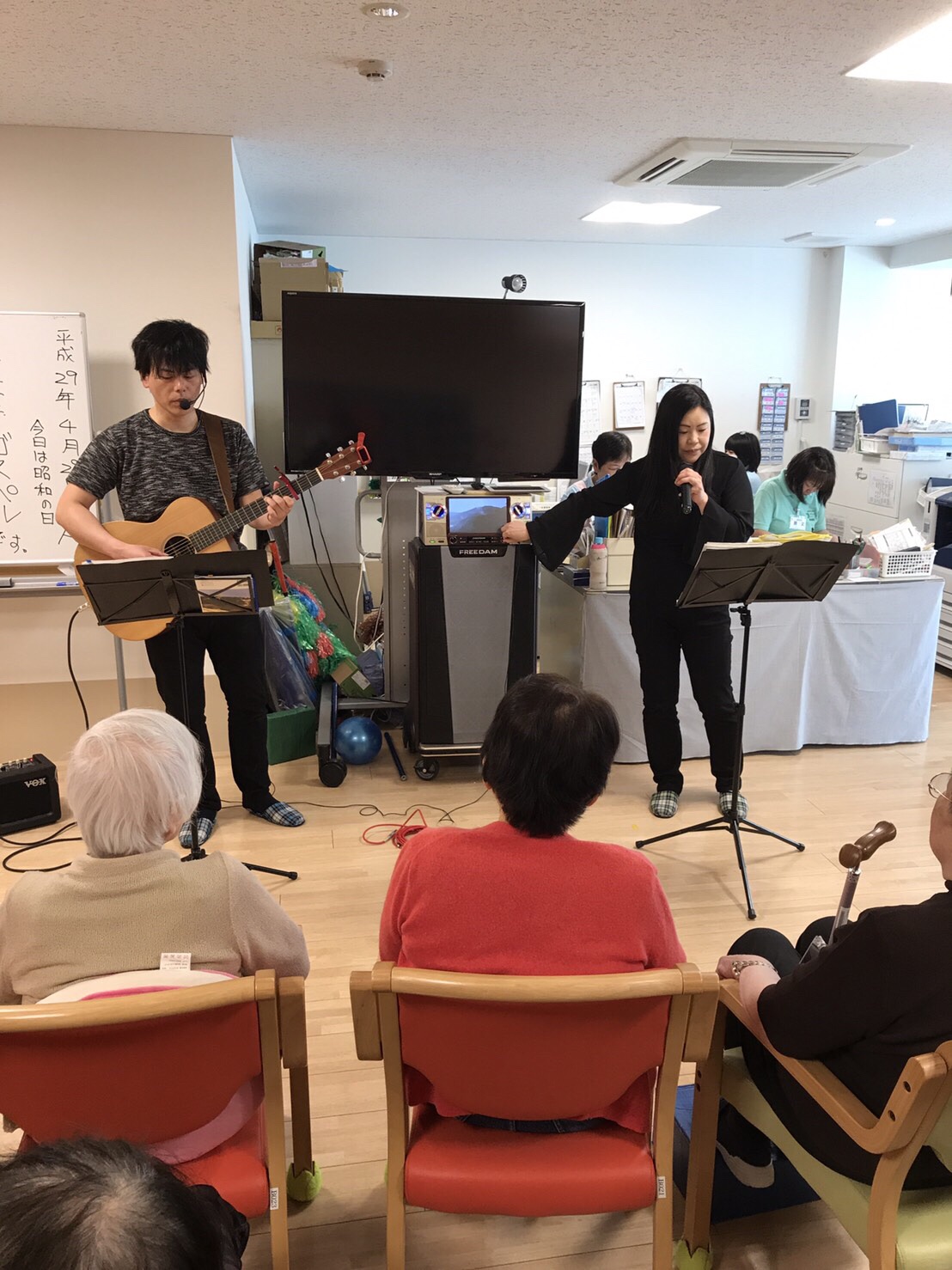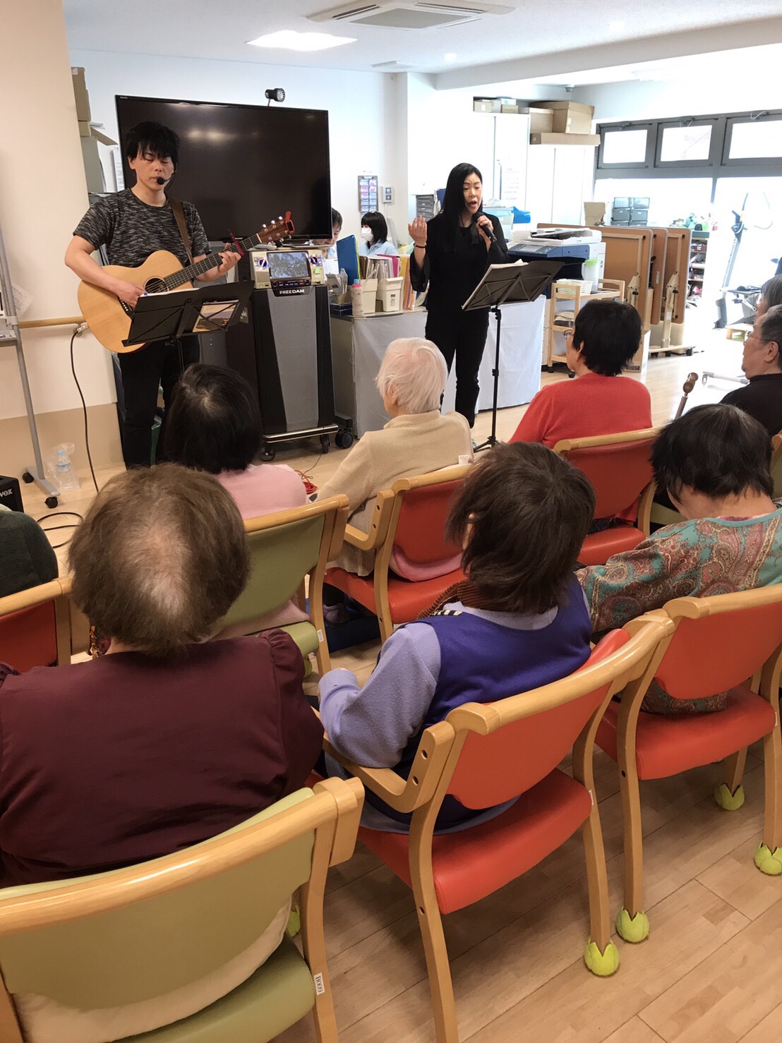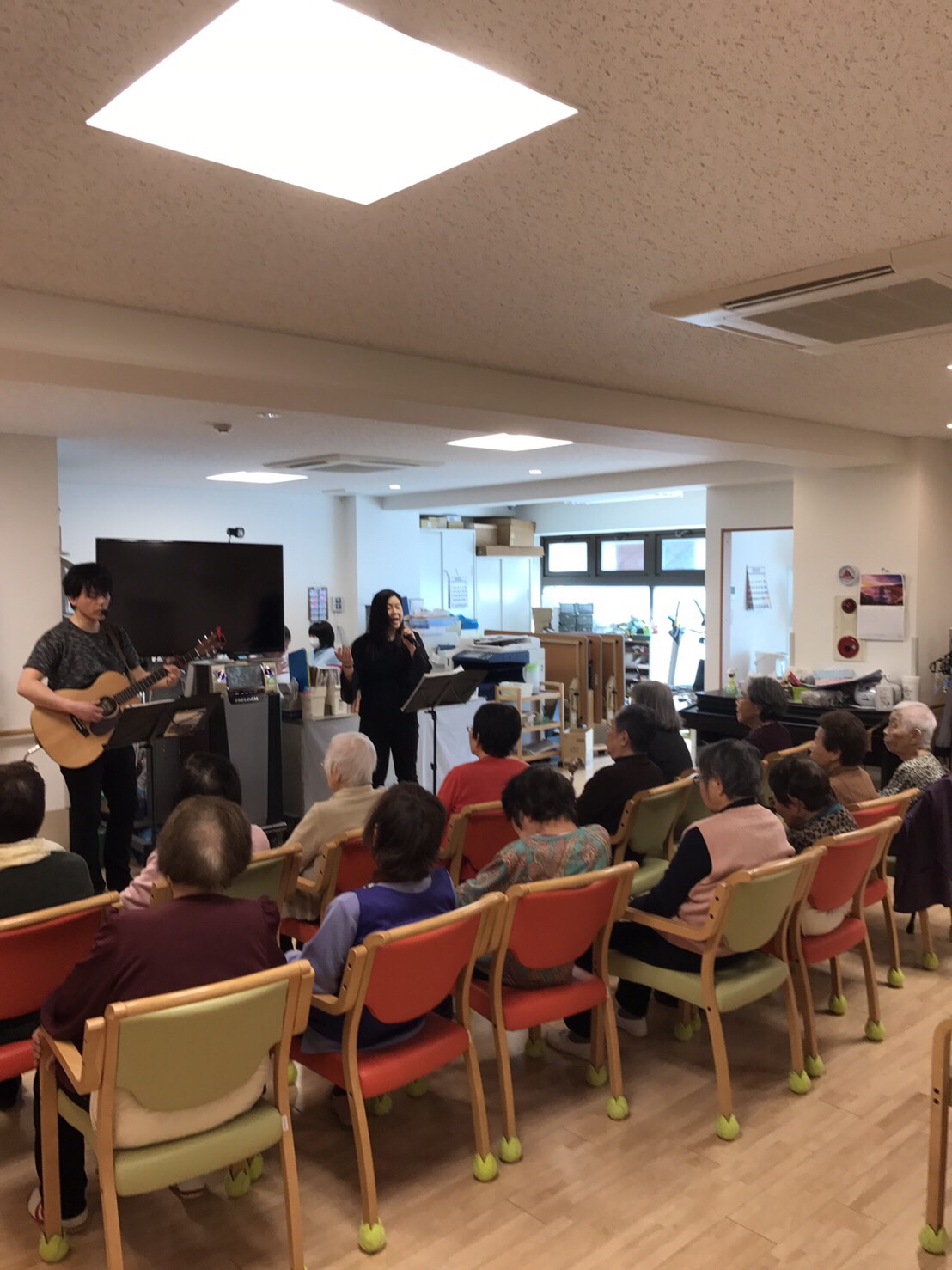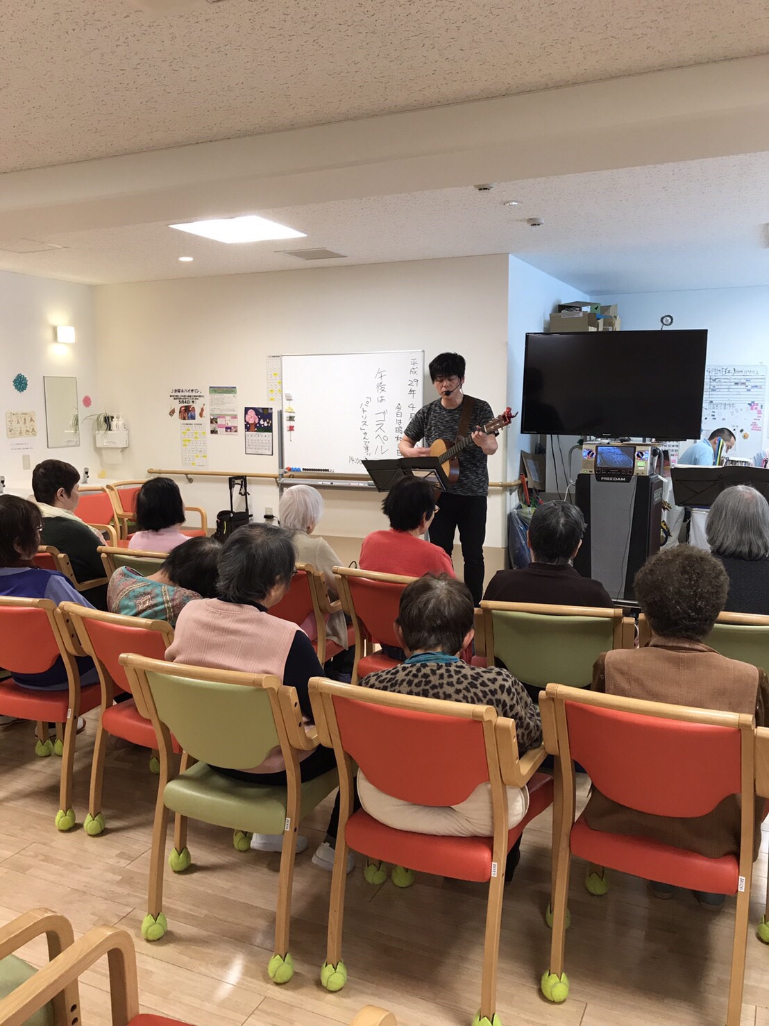 コンサート終了後は皆さんと一緒にお茶とおやつをいただきました! その後、来月の宣伝のため写真撮影がありましたが、次々と利用者の皆様も携帯電話を持って来られ、撮影会のようになりました(笑)