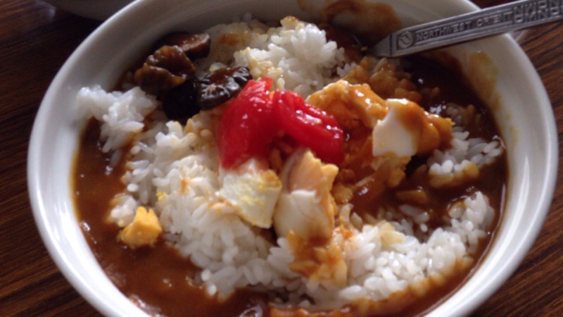 レトルトカレー に茹で卵とトマト トッピング! oji