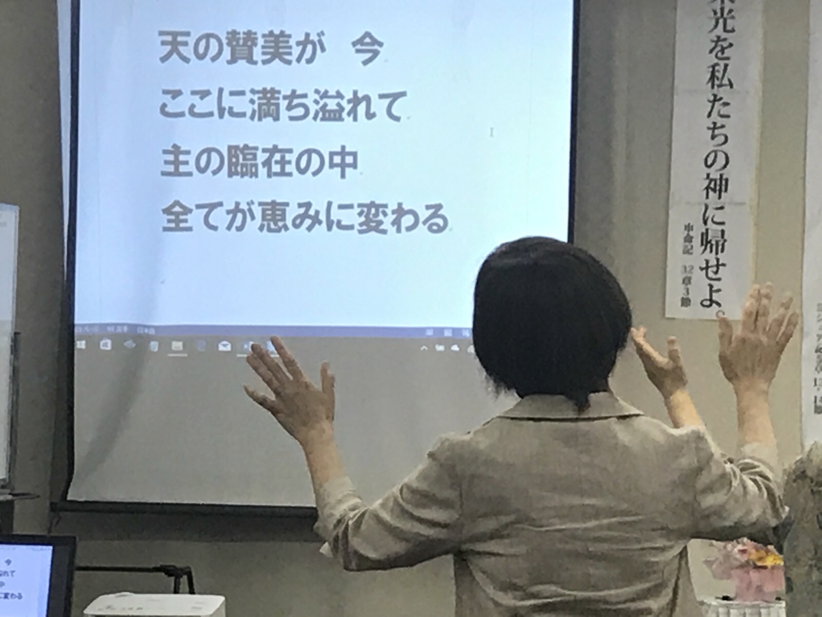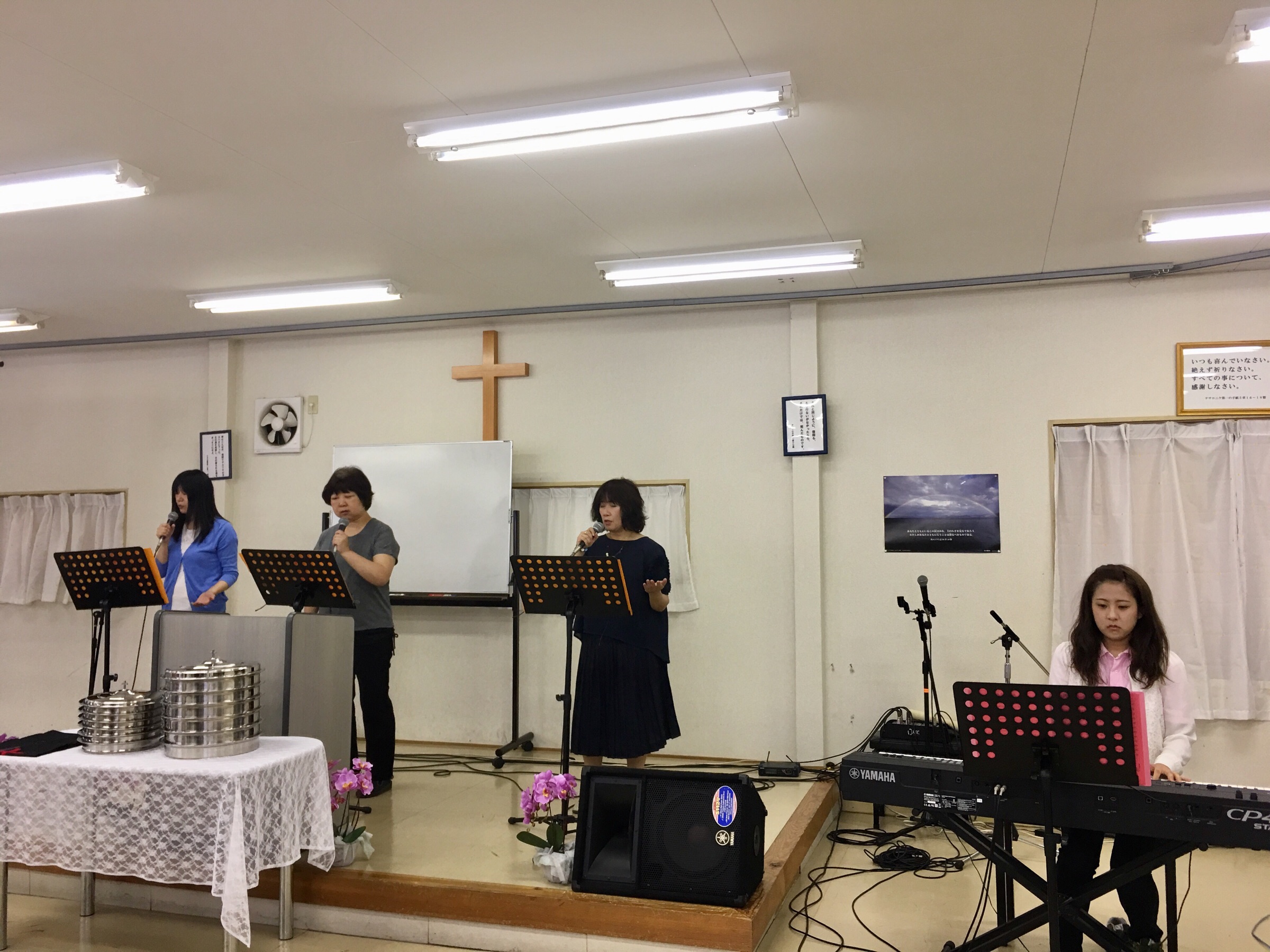 第一礼拝が始まりました。山本さんの導きで賛美を捧げています♪ 四日市