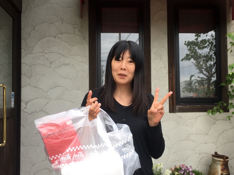 ケーキ屋さんに寄りました!ギュウちゃんは、お留守番のリカルドさんのためにケーキ買いました! 四日市 みうら