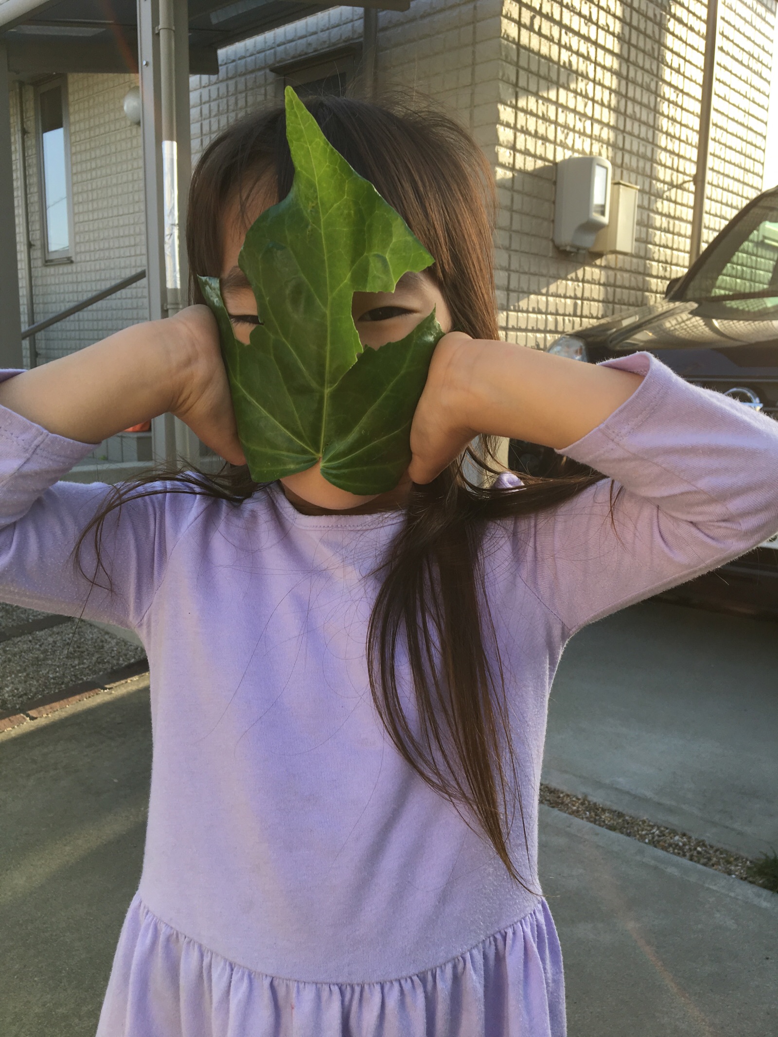 シダの葉を仮面に だあれだ〜。 ひまりで〜す。 静岡教会 ケイ