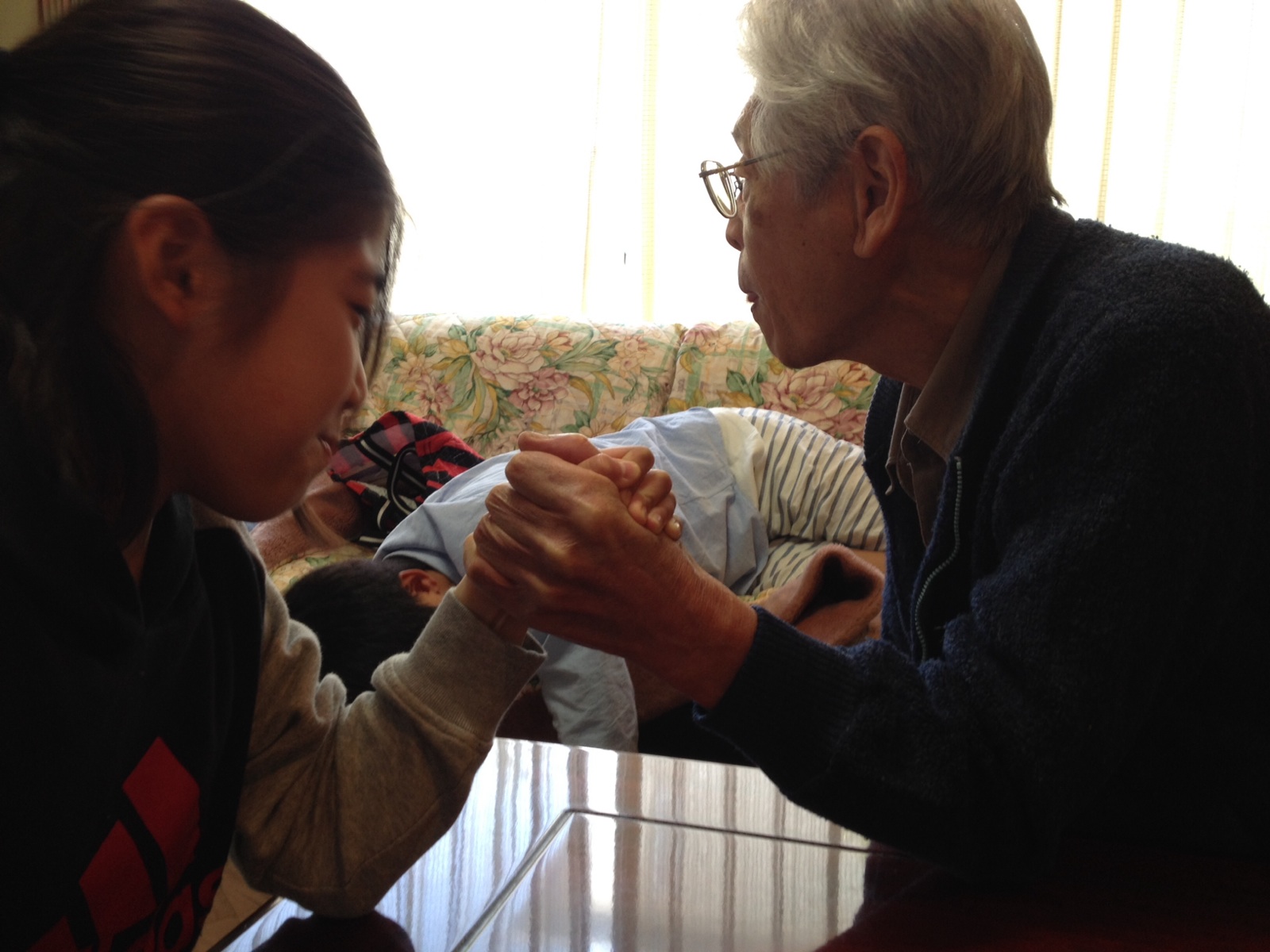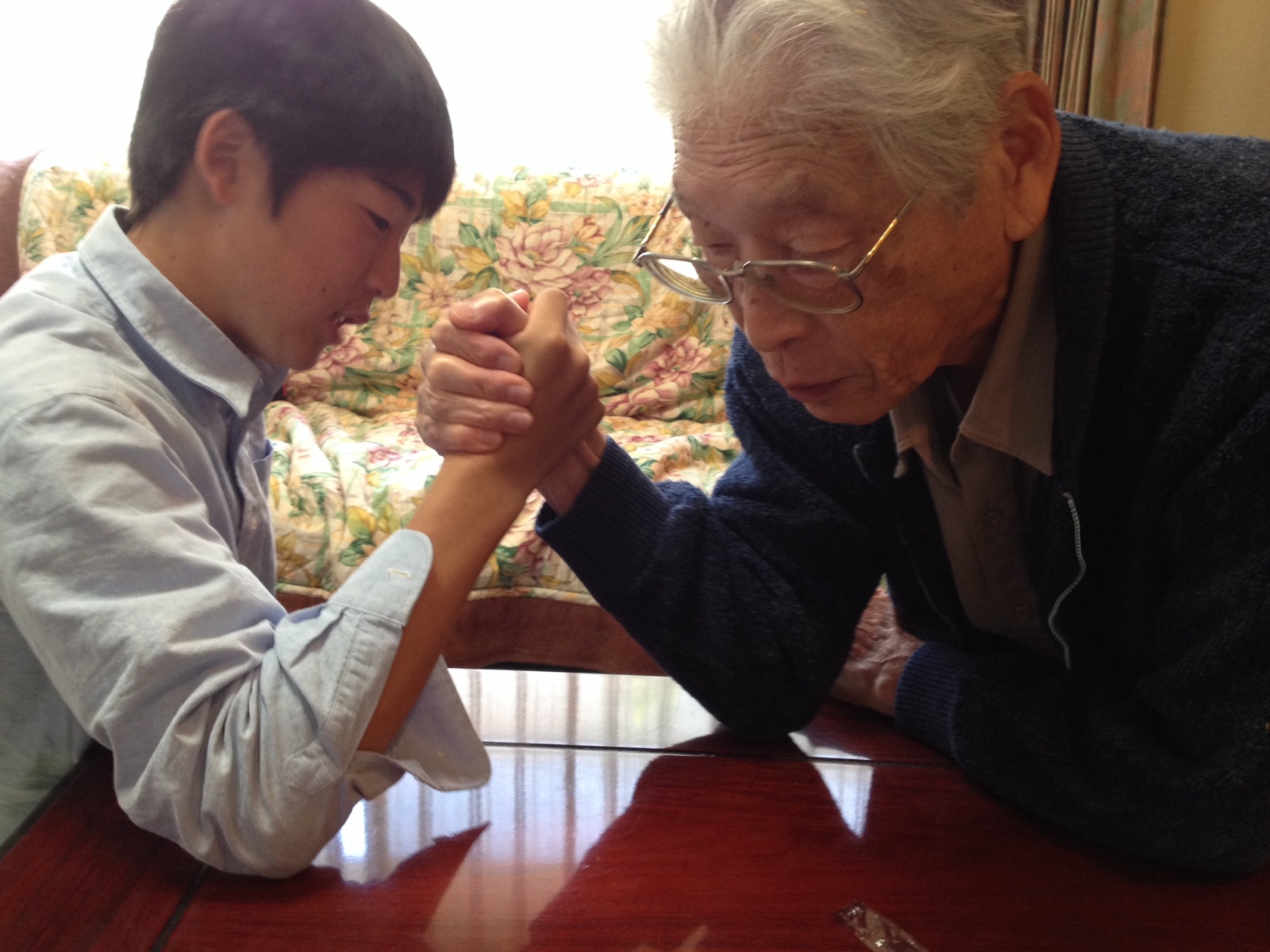 腕相撲してました。おじいちゃんけっこう強いんだそうです。 東フィラデルフィヤ シオン