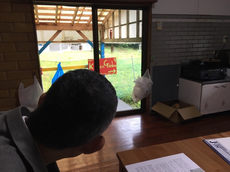 施設、ハッピーファームに到着しました! 施設長の坂本さんが迎えてくださいました!