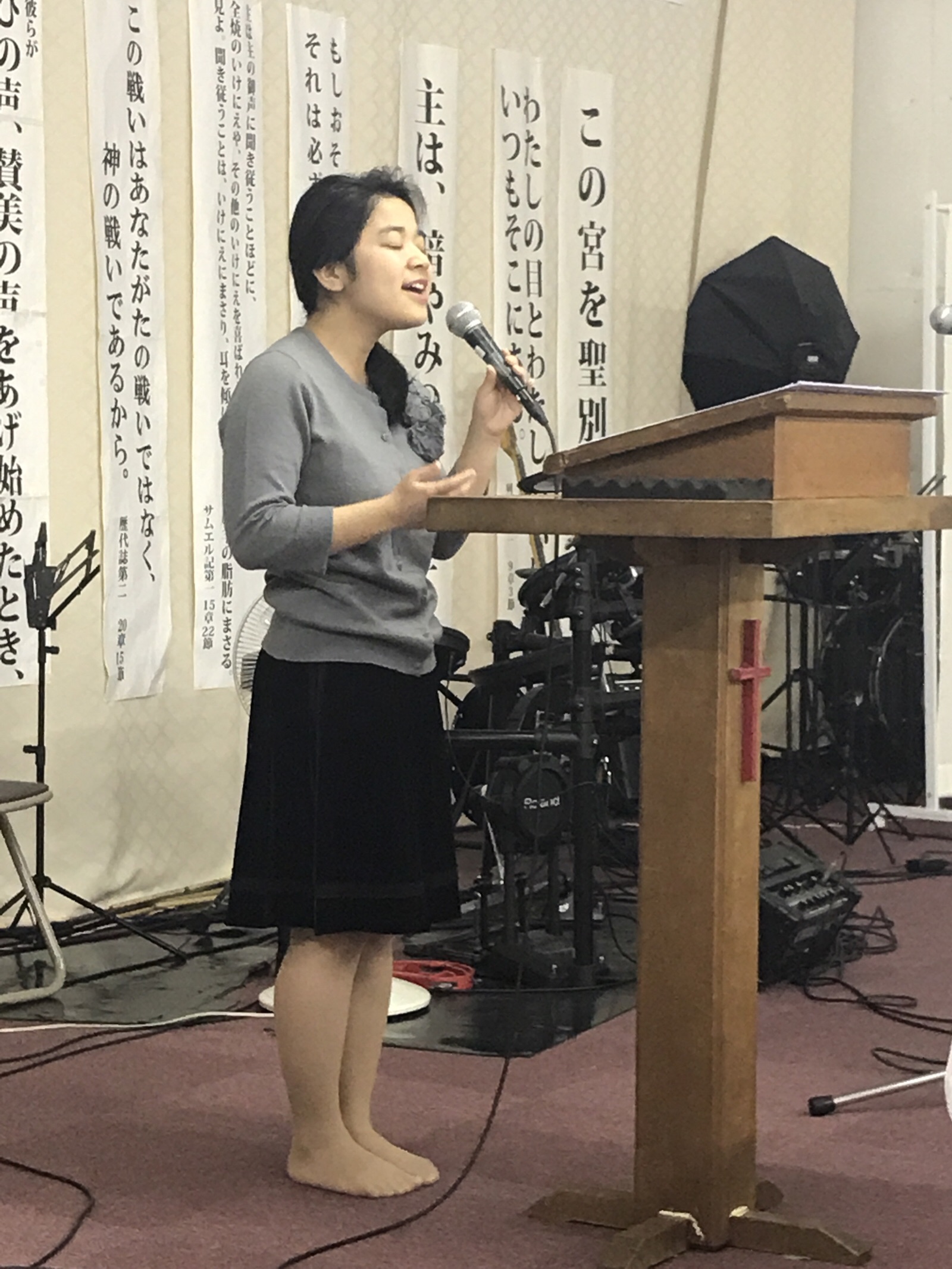 第一礼拝が始まりました。匹田さんのリードで心からの賛美が捧げられています! 四日市