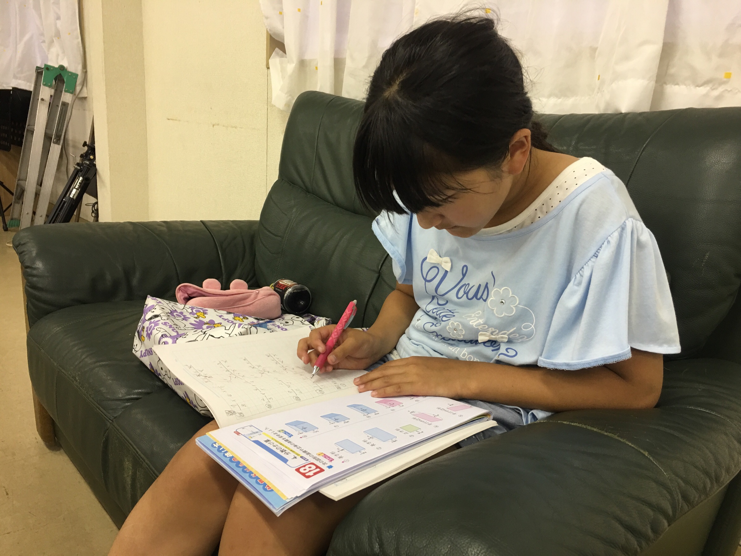 金曜礼拝に来てたハナちゃん!始まる前に宿題をしてました〜頑張ってたよ☆ 四日市 いまい