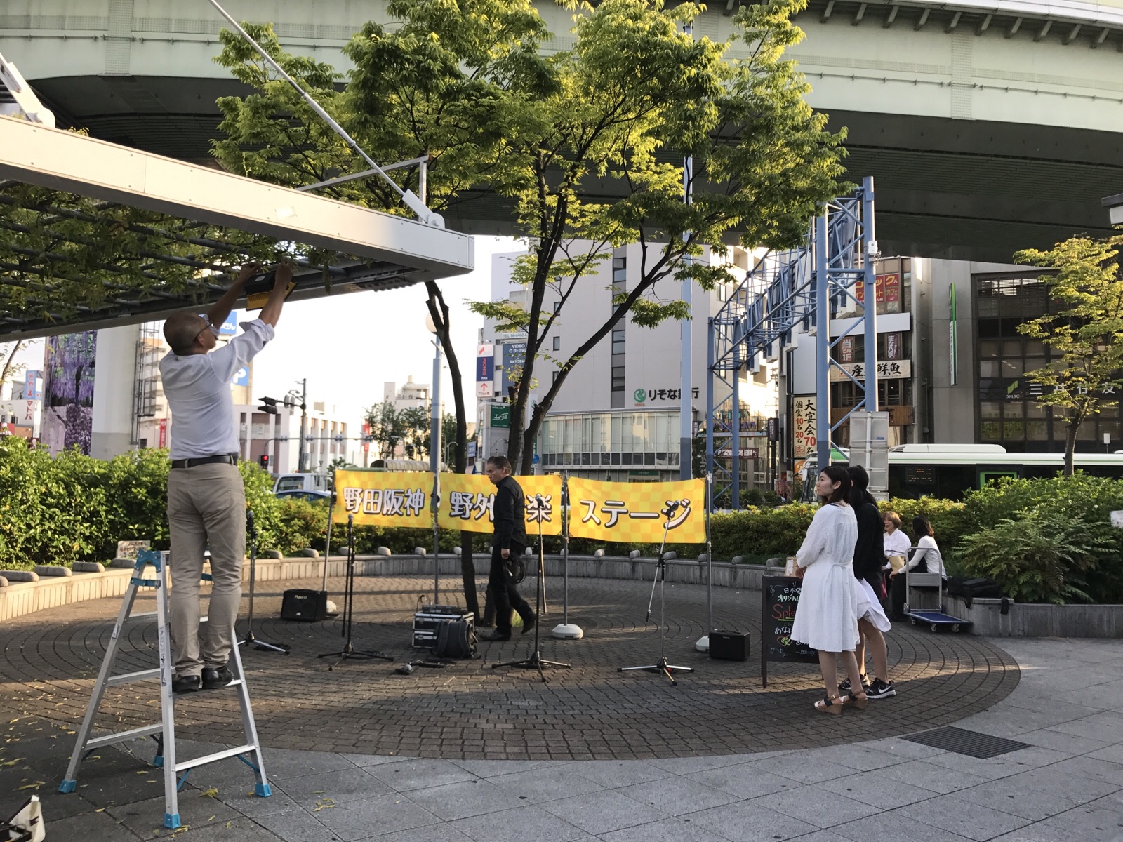 福島区の担当者さんが来て、ステージの設定をしてくださっています。 大阪エステル