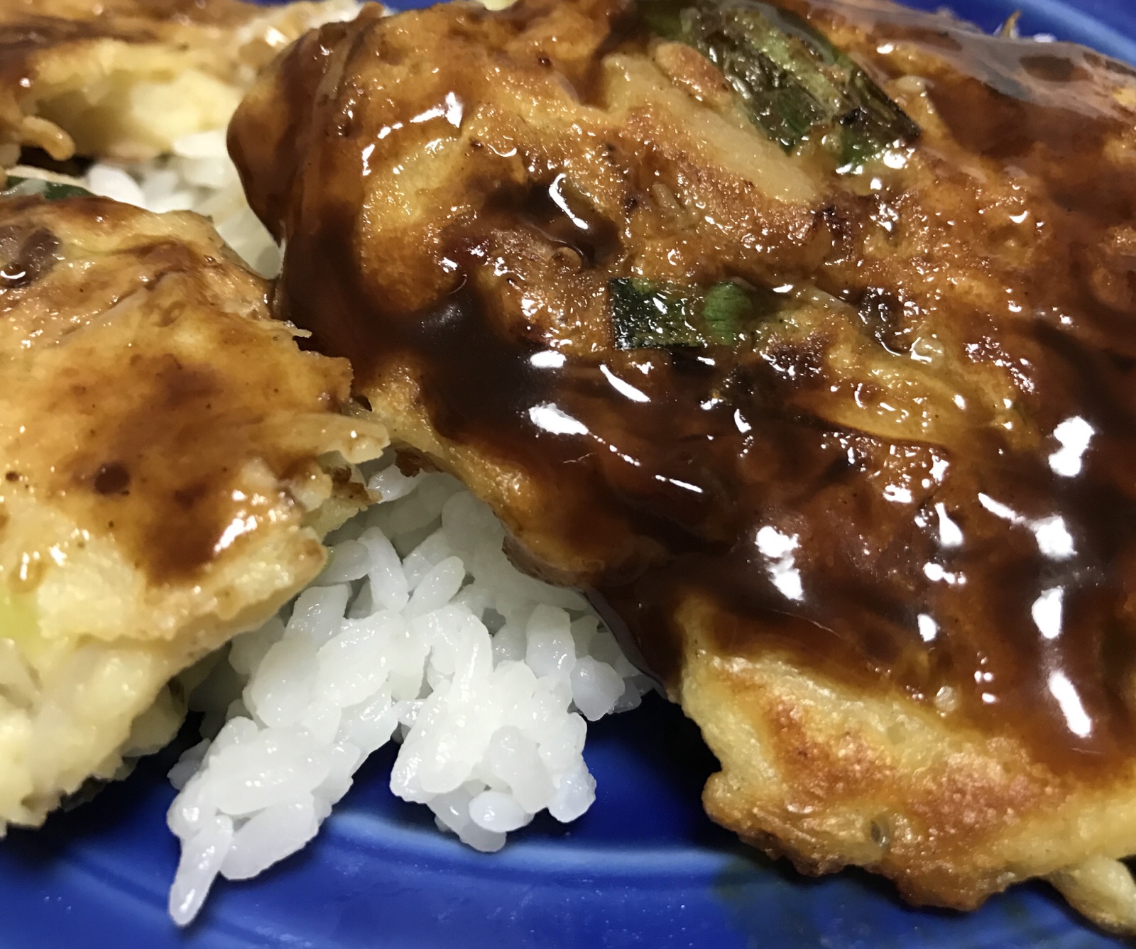 お好み焼き飯です。炭水化物に炭水化物ですが…ご満悦です。 東フィラデルフィヤ シオン