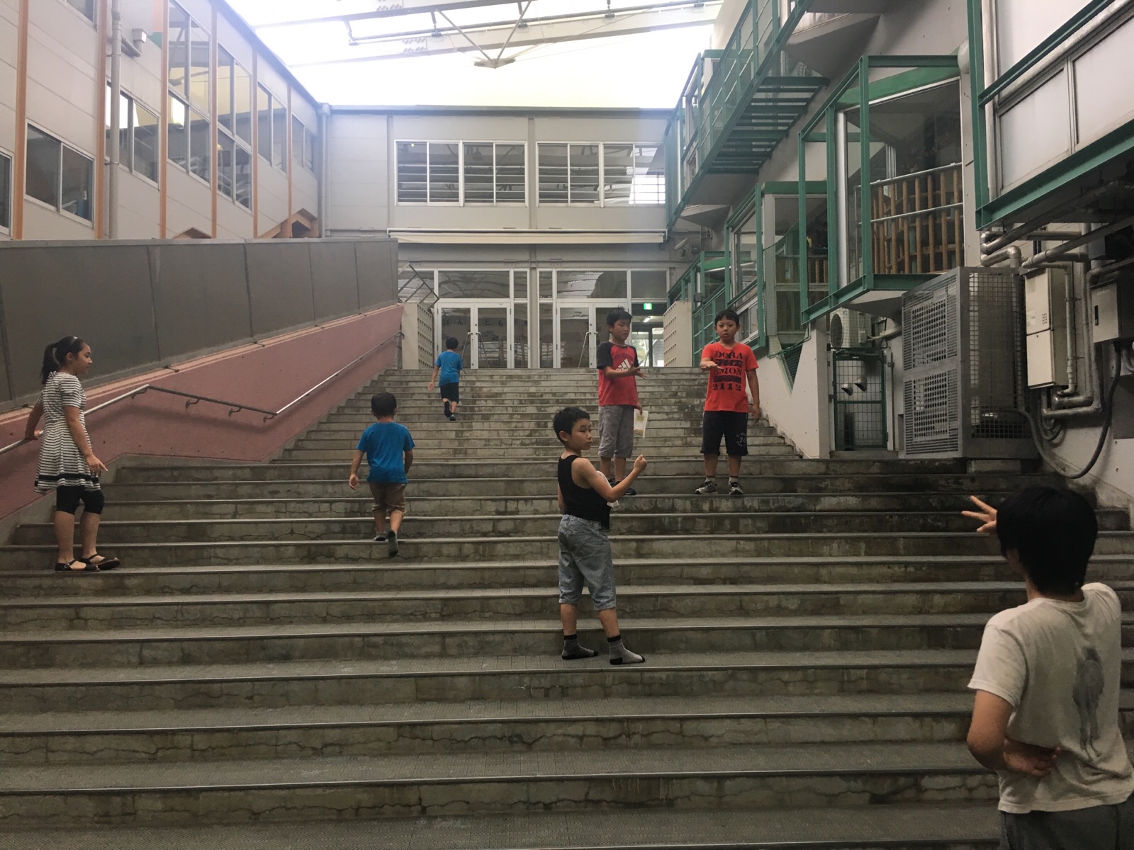 次は階段のリレーです٩( ᐛ )و こどもキブツ