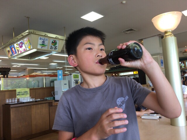 デニダビ君、コーラをカッコよく飲み干してます! 東京アンテオケバス1号