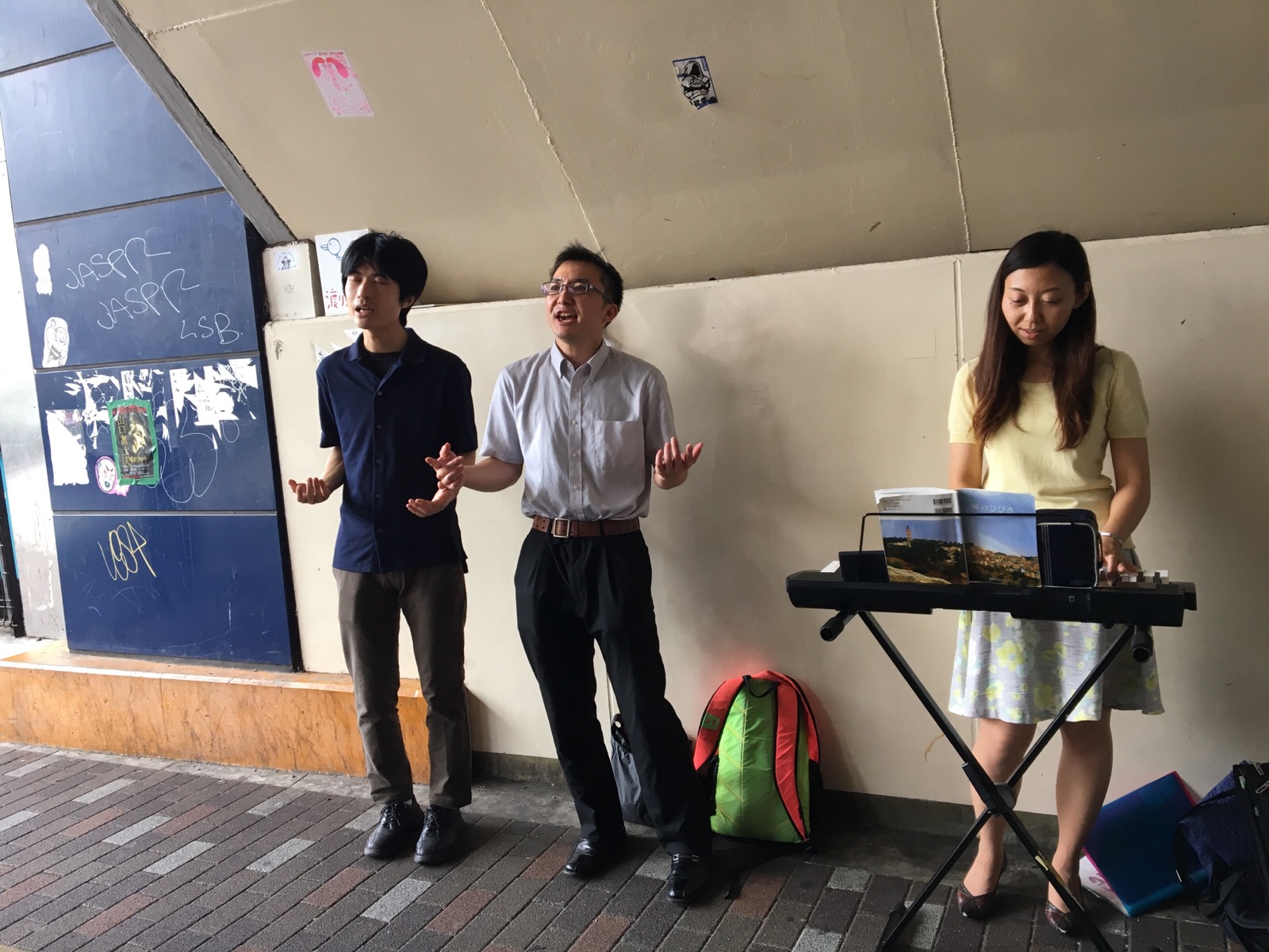 路上ライブ中♪です! 世界の終わり、弓を引け矢を放て、桜♪ エステル清水