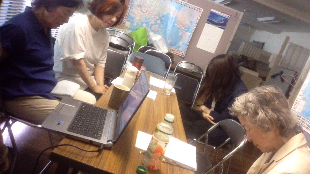 ハンナさんが チームブログを 杉澤さんに 見せておられます oji