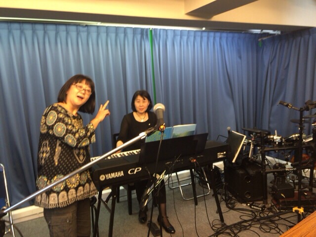 会堂に来たら、ウラノスのお二人が賛美の練習を。 素敵な感じです! Kayano