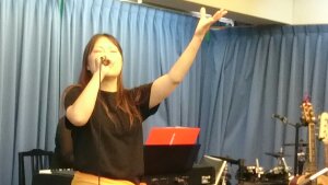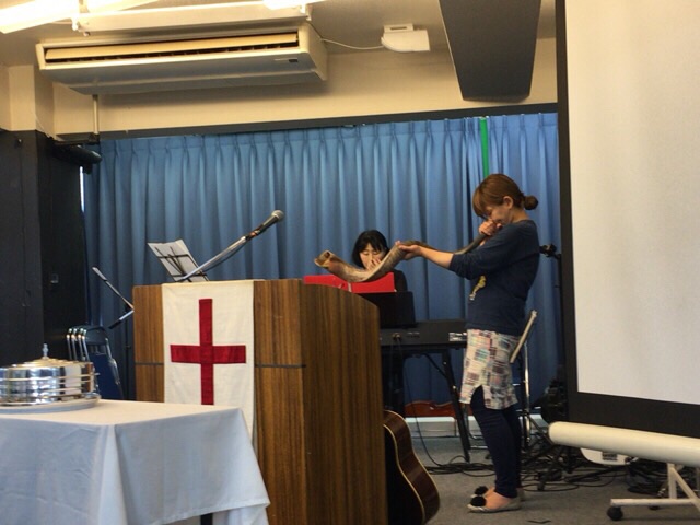 角笛が吹かれました。 火曜礼拝が始まりました。 Kayano