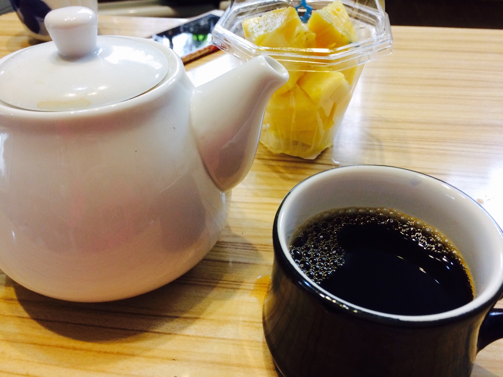 食後にパイナップルと珈琲。 あ、すみません、ゴスペルコンテストの司会のことは、これからです。 ミカエル