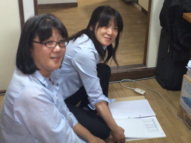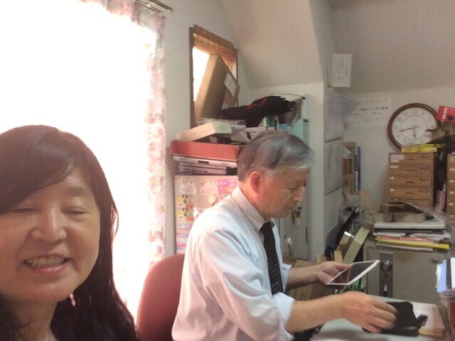 教会事務所に戻ってきました! CS、中高生会のメンバー確認しているおふたり! amagai