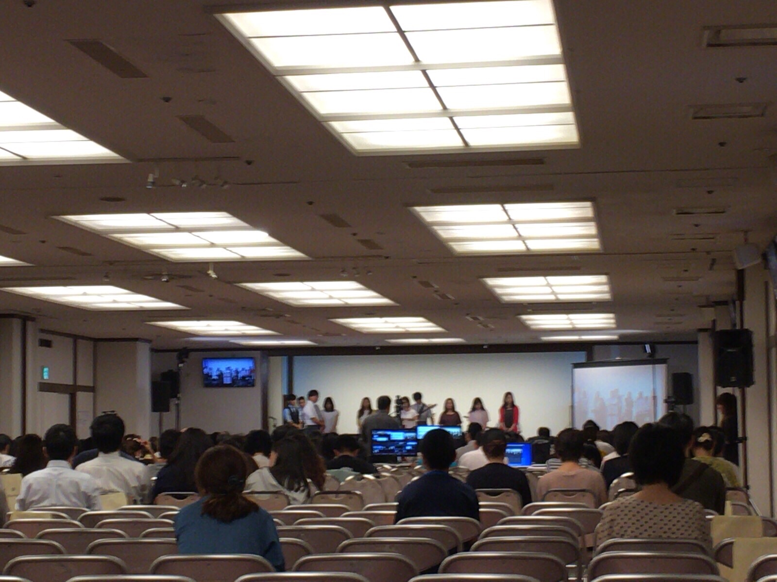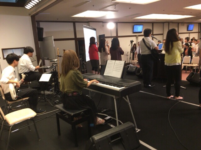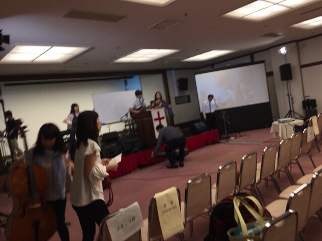 会場では閉会聖会のサウンドチェックが始まります。 Kayano