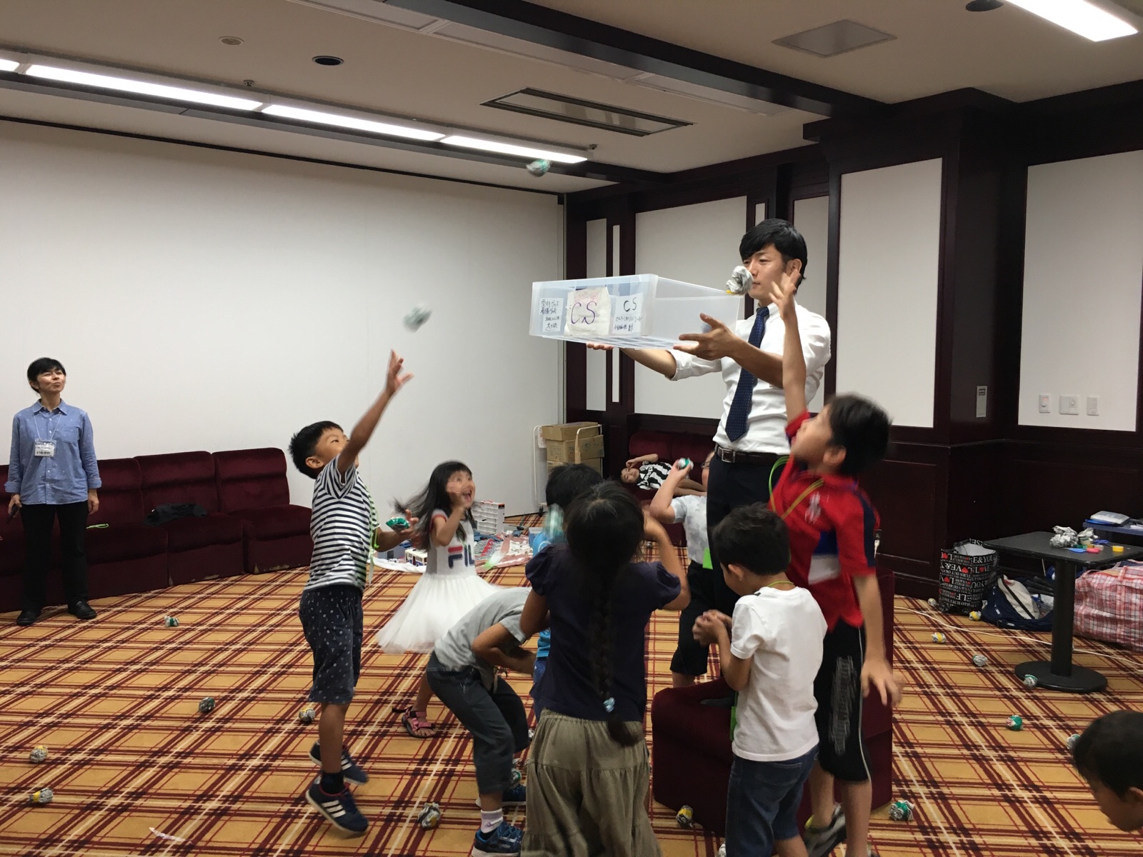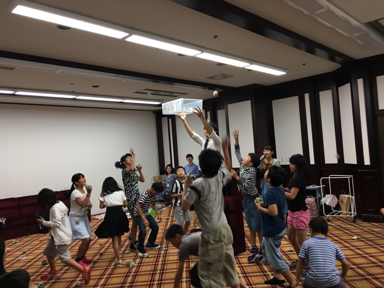 緑チームと黄色チーム同点で、最後に全員で。 1個差で緑チームが勝ちました〜!