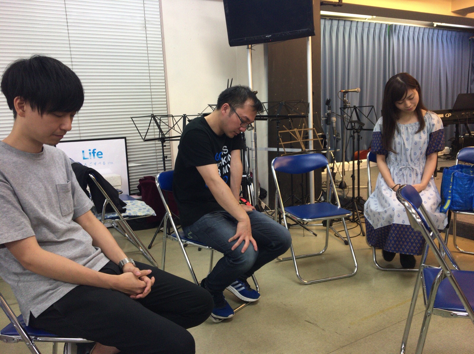 ラインメンバーと一緒にお祈り。しおこちゃん、お仕事後にお祈り会ダッシュで参加でした〜♪