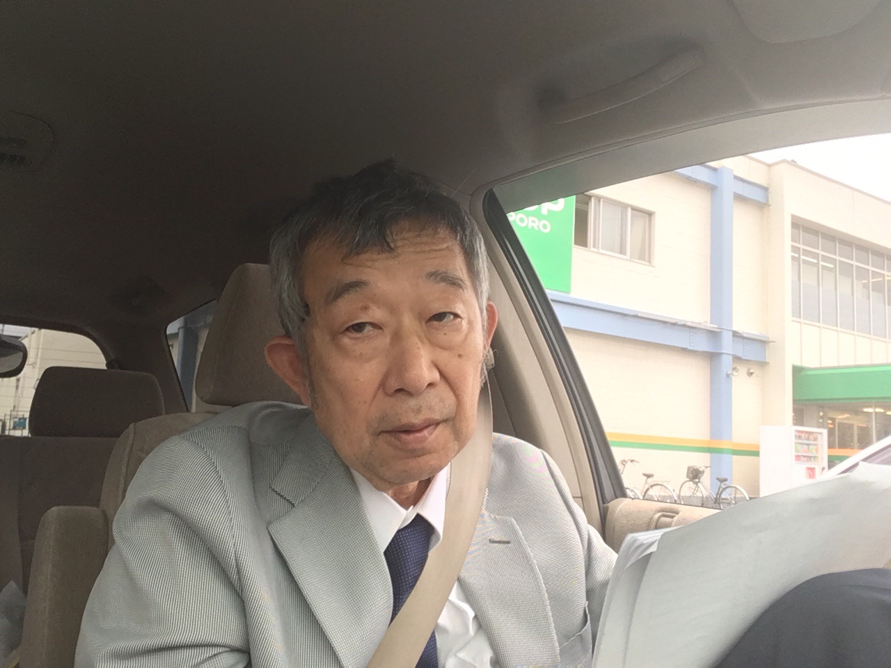 天候は曇り、気温22℃。路上に停車していても、暑くありません。もちろん、違法駐車ではありません。
