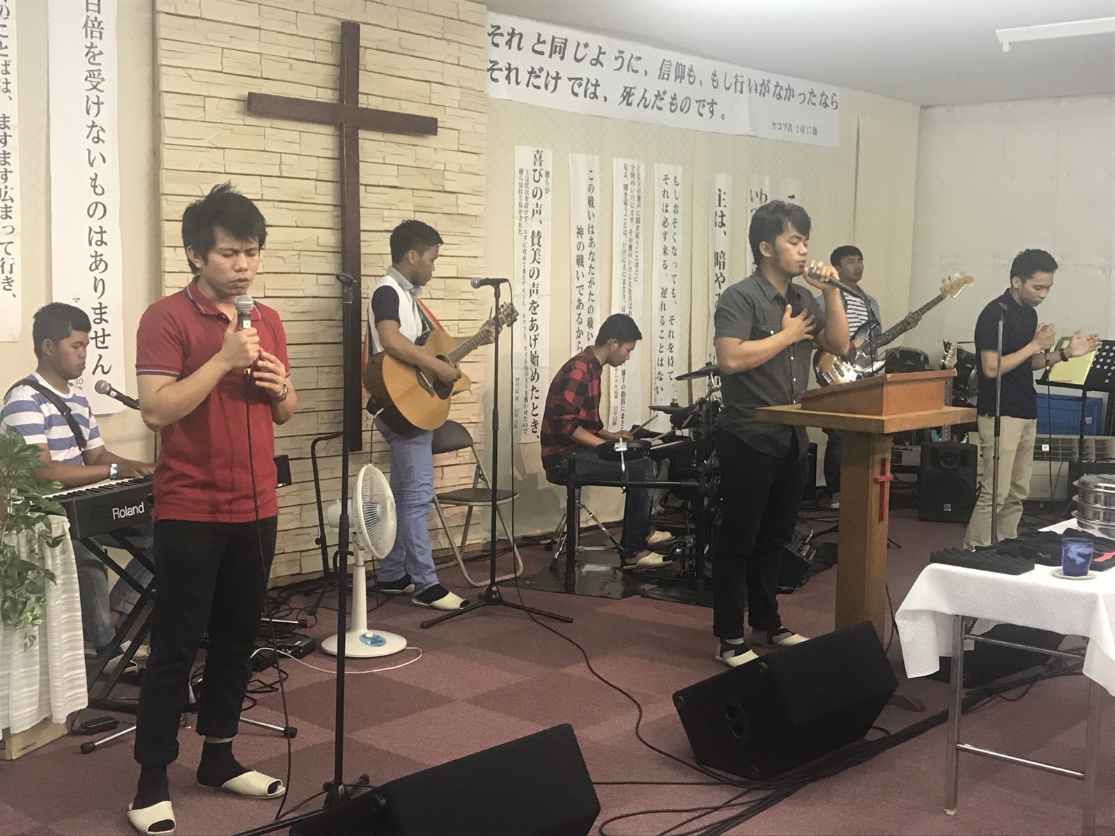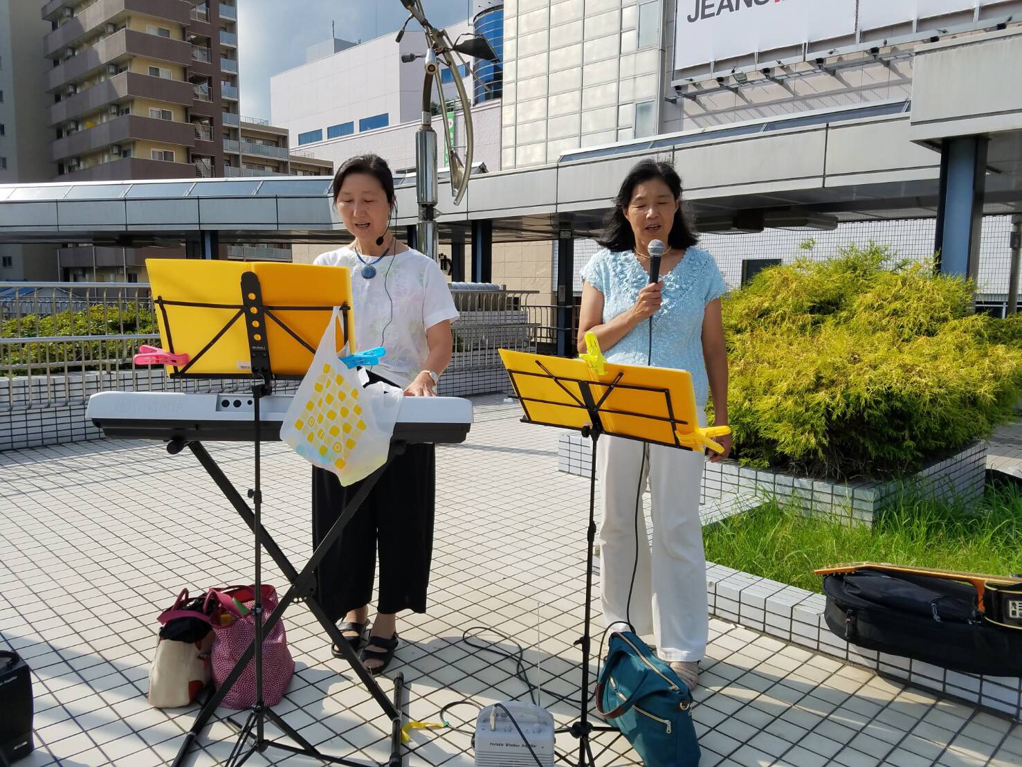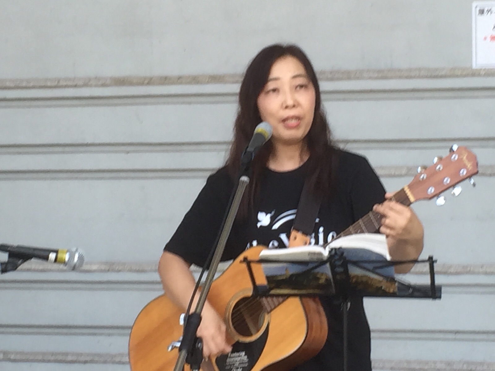礼拝後に路上ライブです。気持ち良く賛美できました。