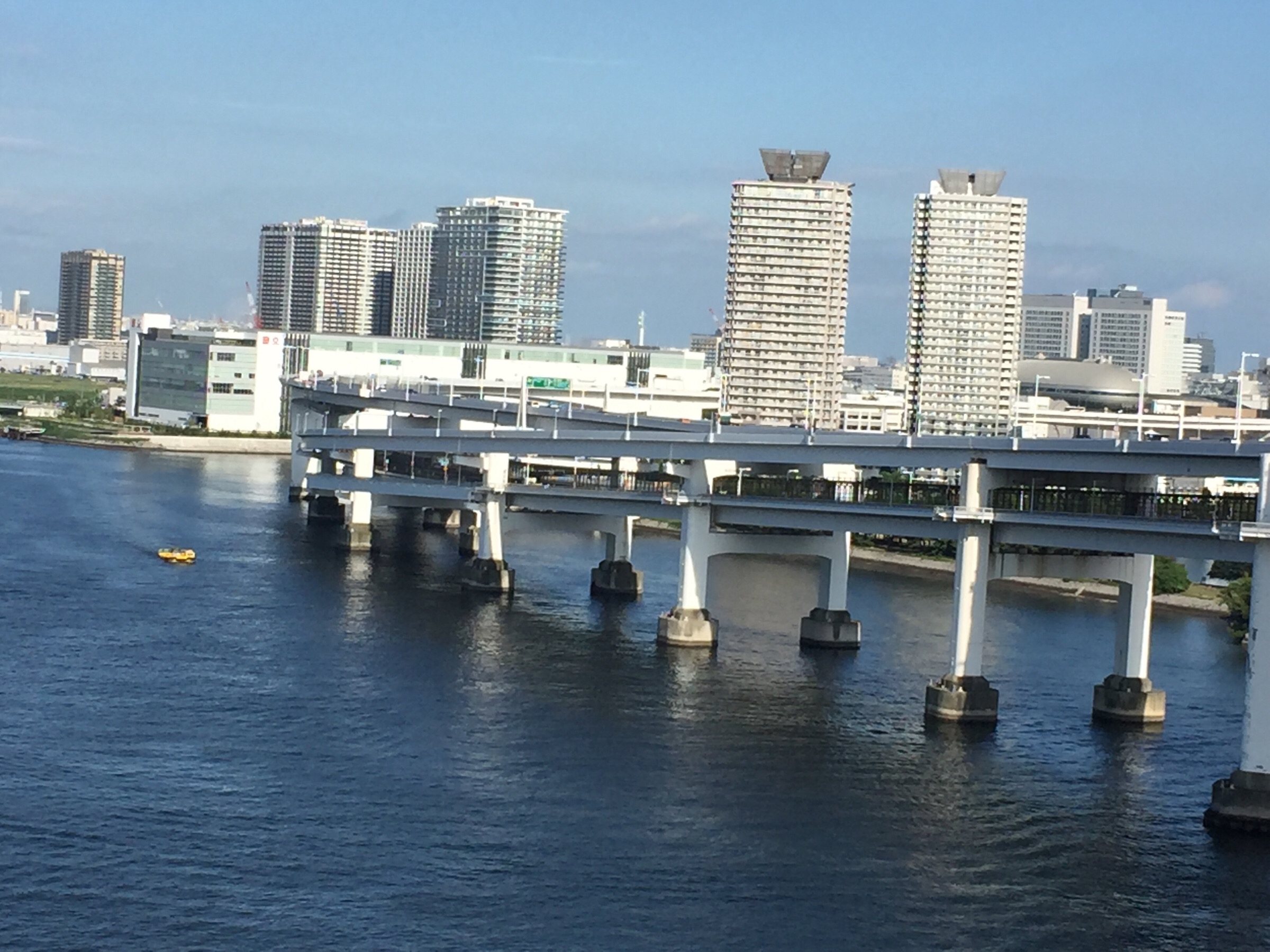 竹芝入り口、建物の7階までエレベーターで登り、それからレインボーブリッジでした。 思いの外高く、シオンは怖がっていました(笑) でも景色は最高! ダニエル