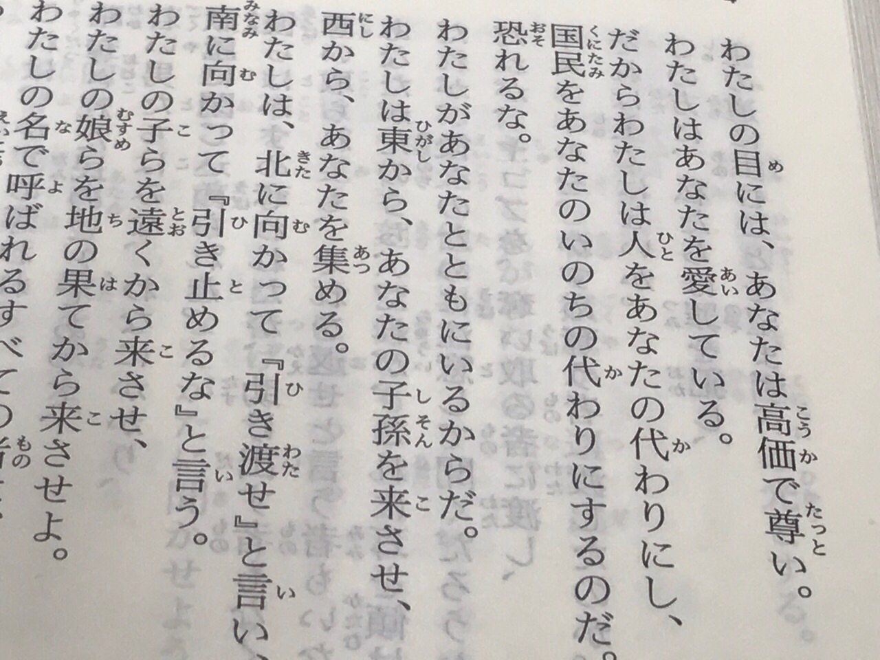 ショートメッセージの聖書箇所 イザヤ書 43章 4節
