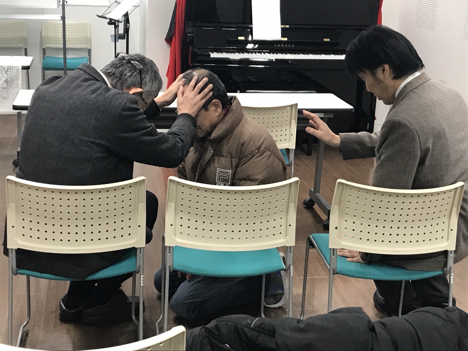 体調のご都合で早めに帰らなくてはならない方のためにいやしのお祈りがなされています。 東フィラデルフィヤ シオン