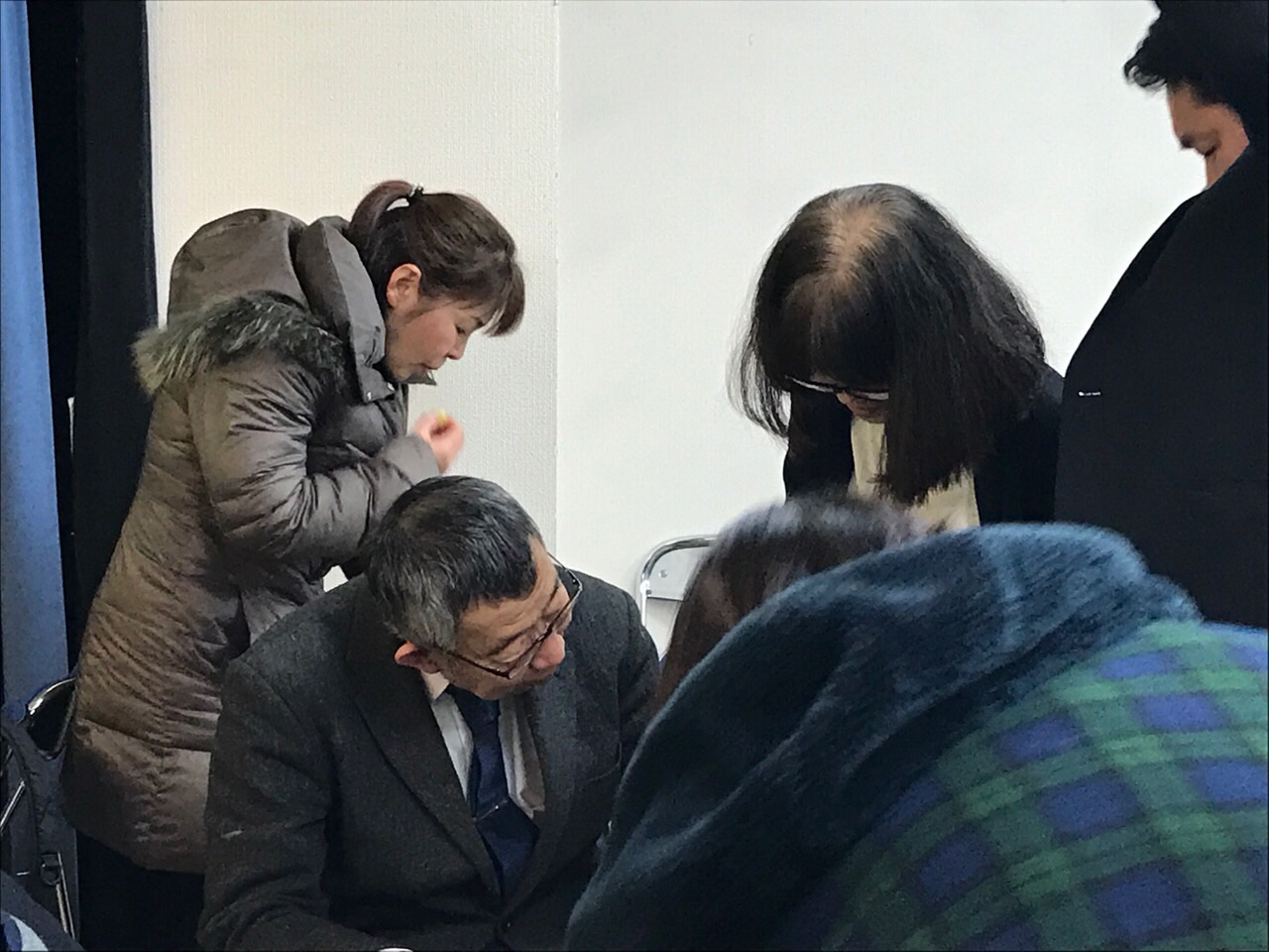第7礼拝後、即、雲虹のスタッフの方が。 東北に向かって、厳寒の原稿書きでしょうか、、、