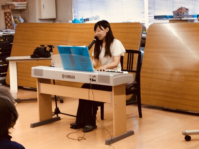 夏ということで、私も小学生時代に習った覚えのある浜辺の歌という唱歌と、前も歌った大きな愛を、皆さんと歌ってみました。とても素晴らしい歌声でした!