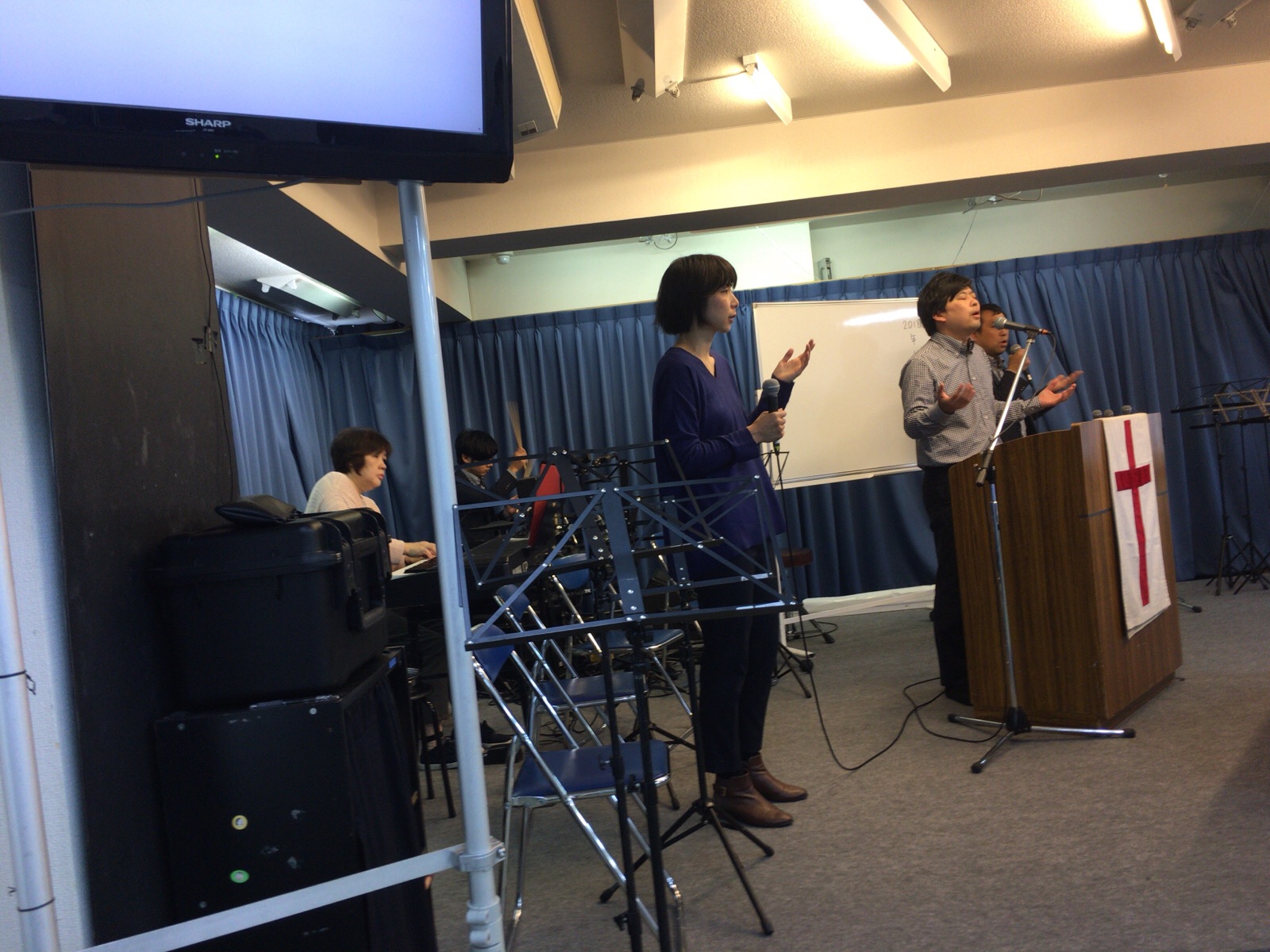 今日はGifts 、NPOのパーティーで歌います。 その前に、今、月曜第二礼拝に出ています。
