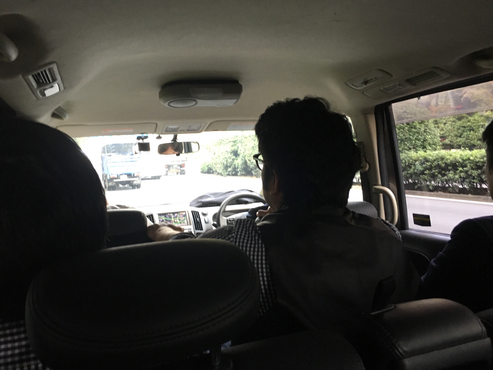 助手席には真境名さんが座っています。