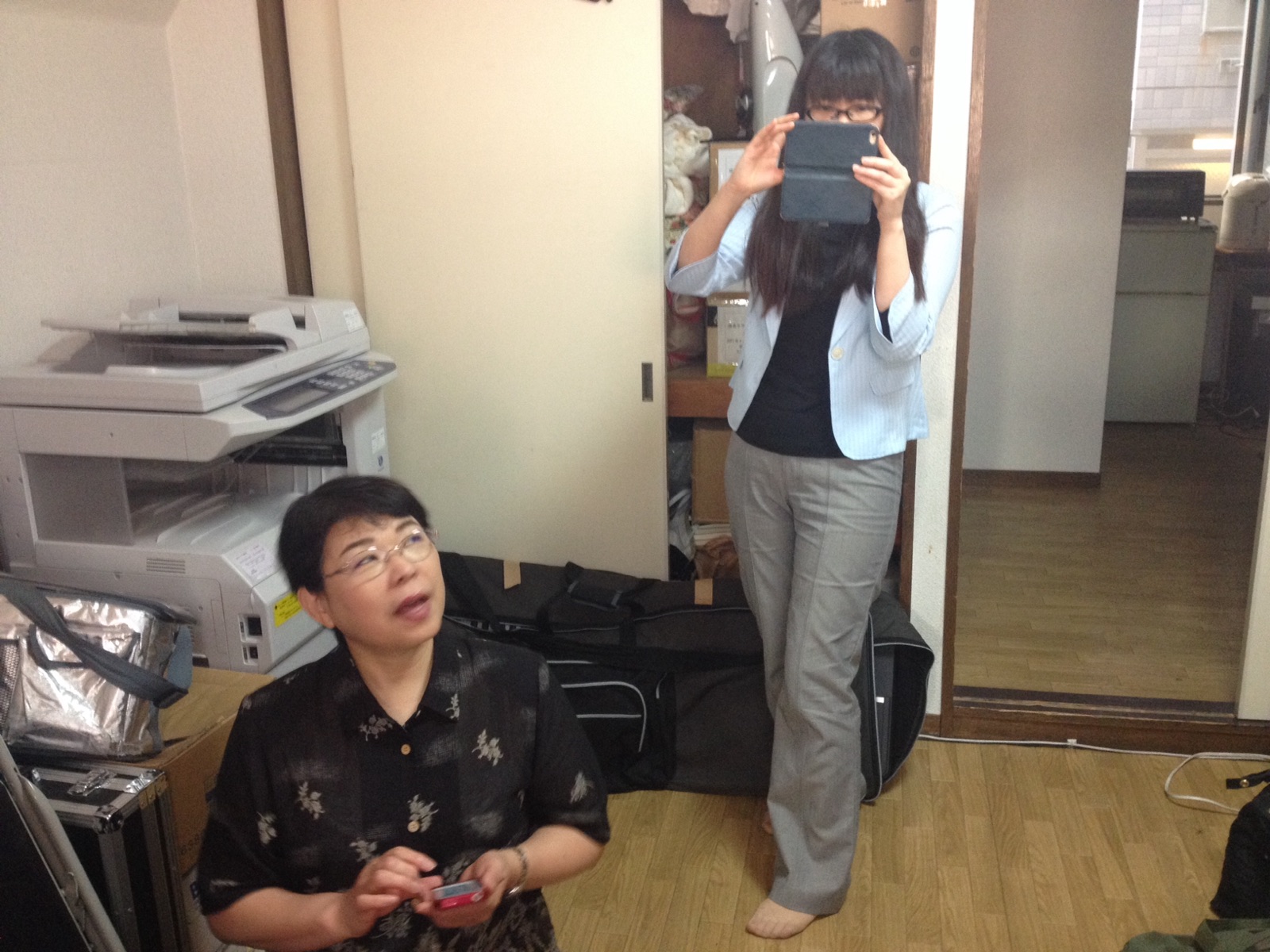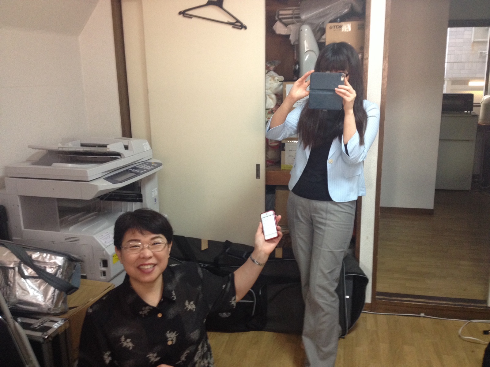 隠しているナオミさん! お二人とも、脚本担当です! (iPhoneのバージョンアップする前に撮らせていただきました) amagai