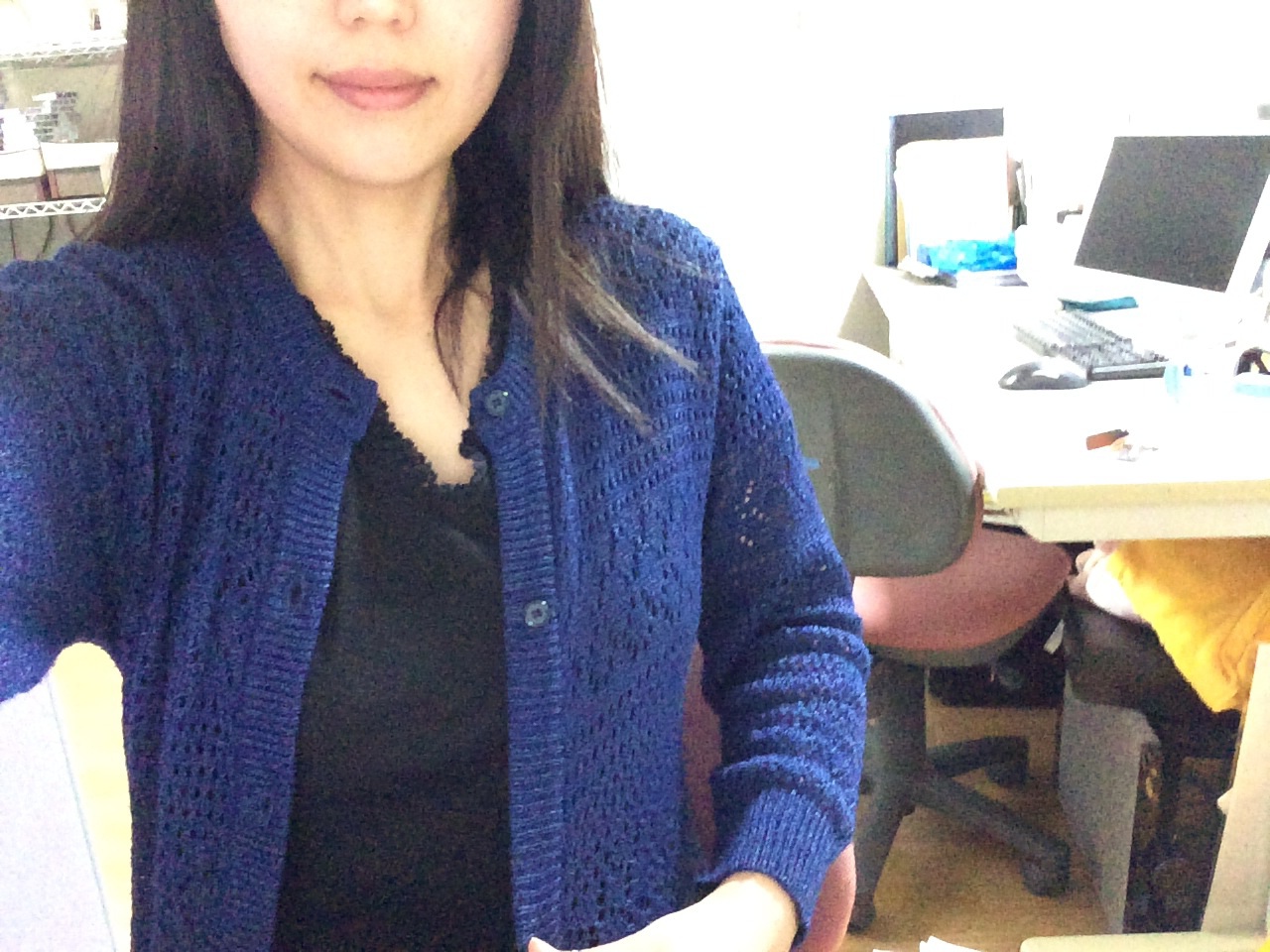 なんのつながりもありませんが、この青いカーディガンはまどかさんのお古、中の黒い服はエステルさんのお古です。いつも皆さまにお世話になっております。 ミカエル