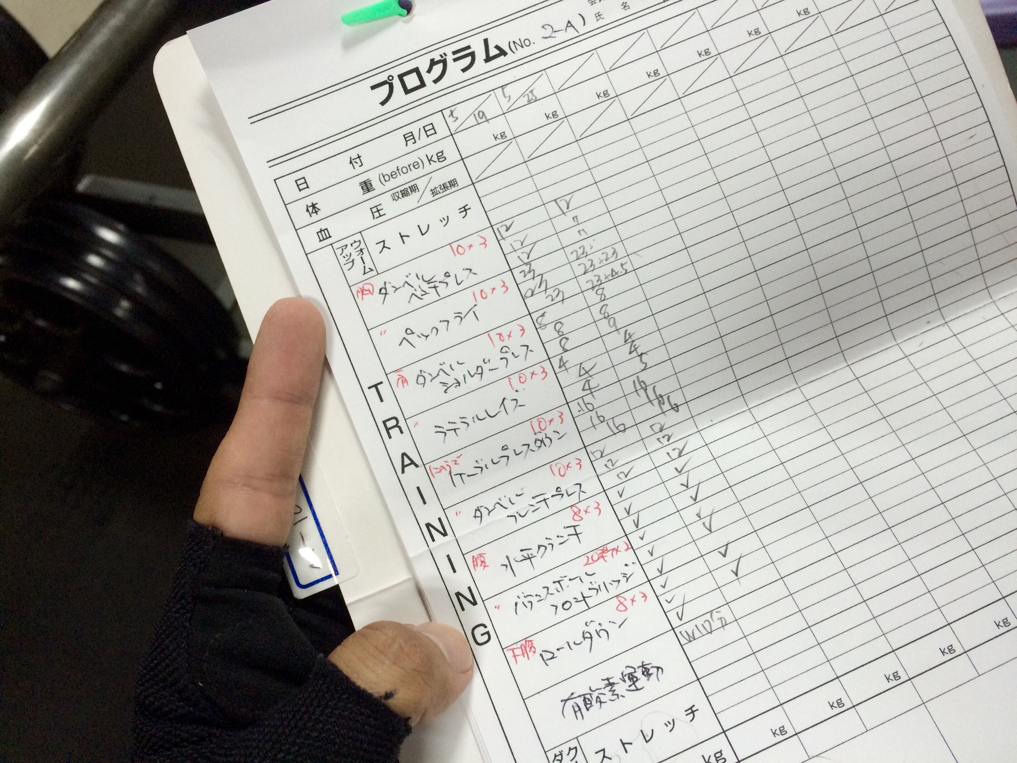 筋トレ終わりました♪ 前回からメニューが更新されキツくなりました! しかもAメニュー、Bメニューと2つもあります(苦笑)鬼コーチです(笑) オンラインせいご