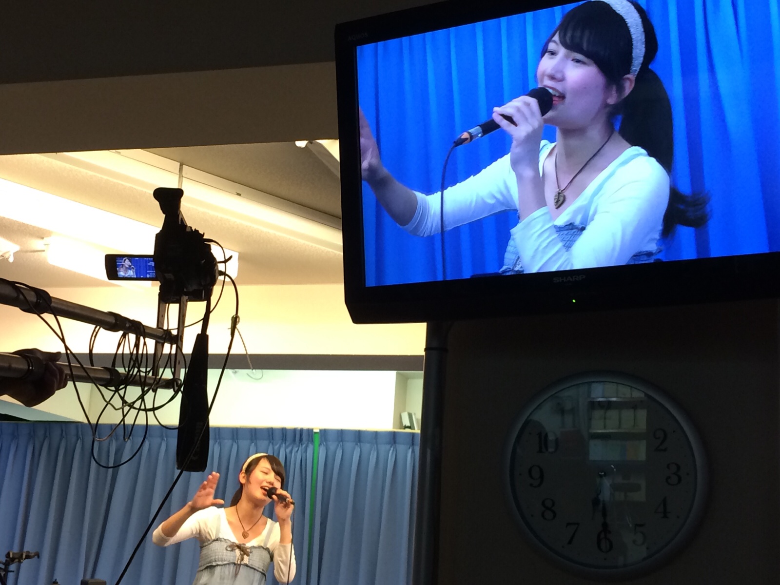 奥のカメラはイッちゃん、手前はまゆなちゃんがカメラを担当。