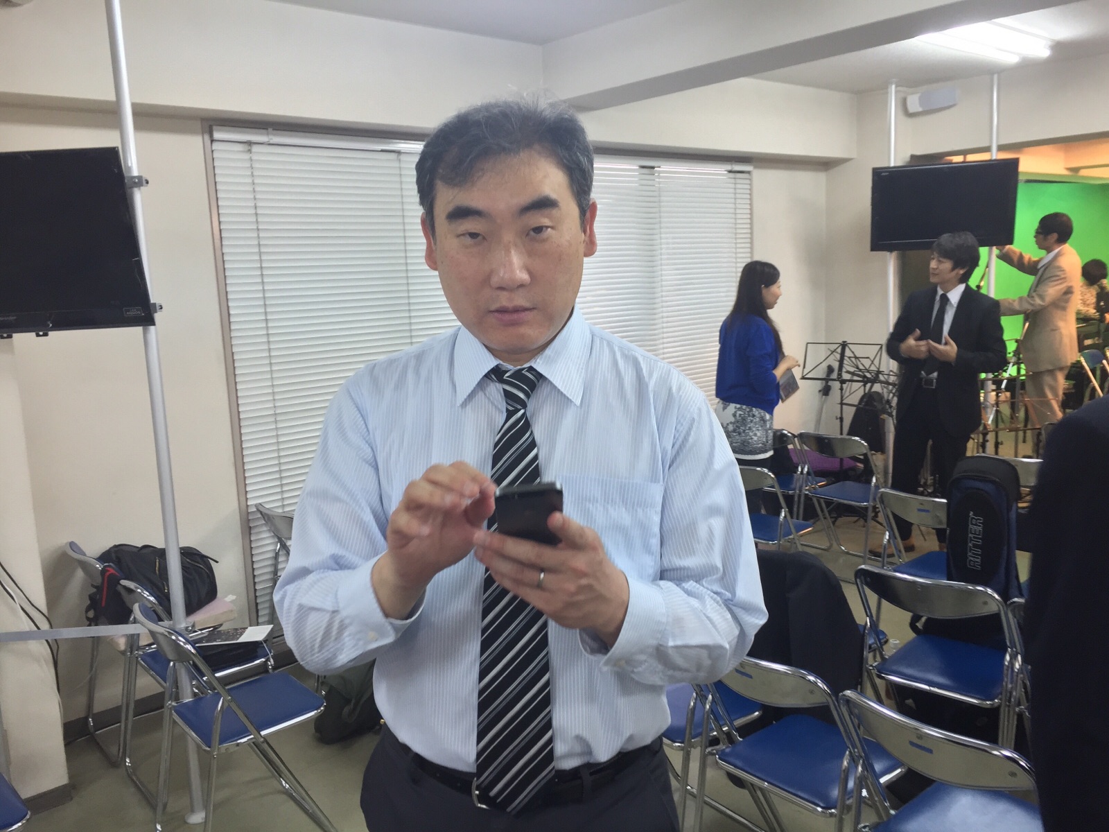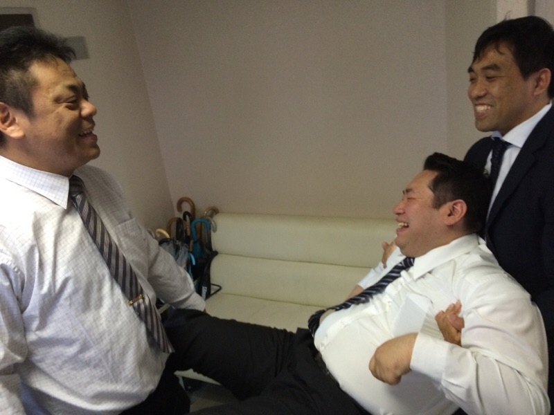 脚本担当の益川くん、なぜかポーズ取ってます。 yamada